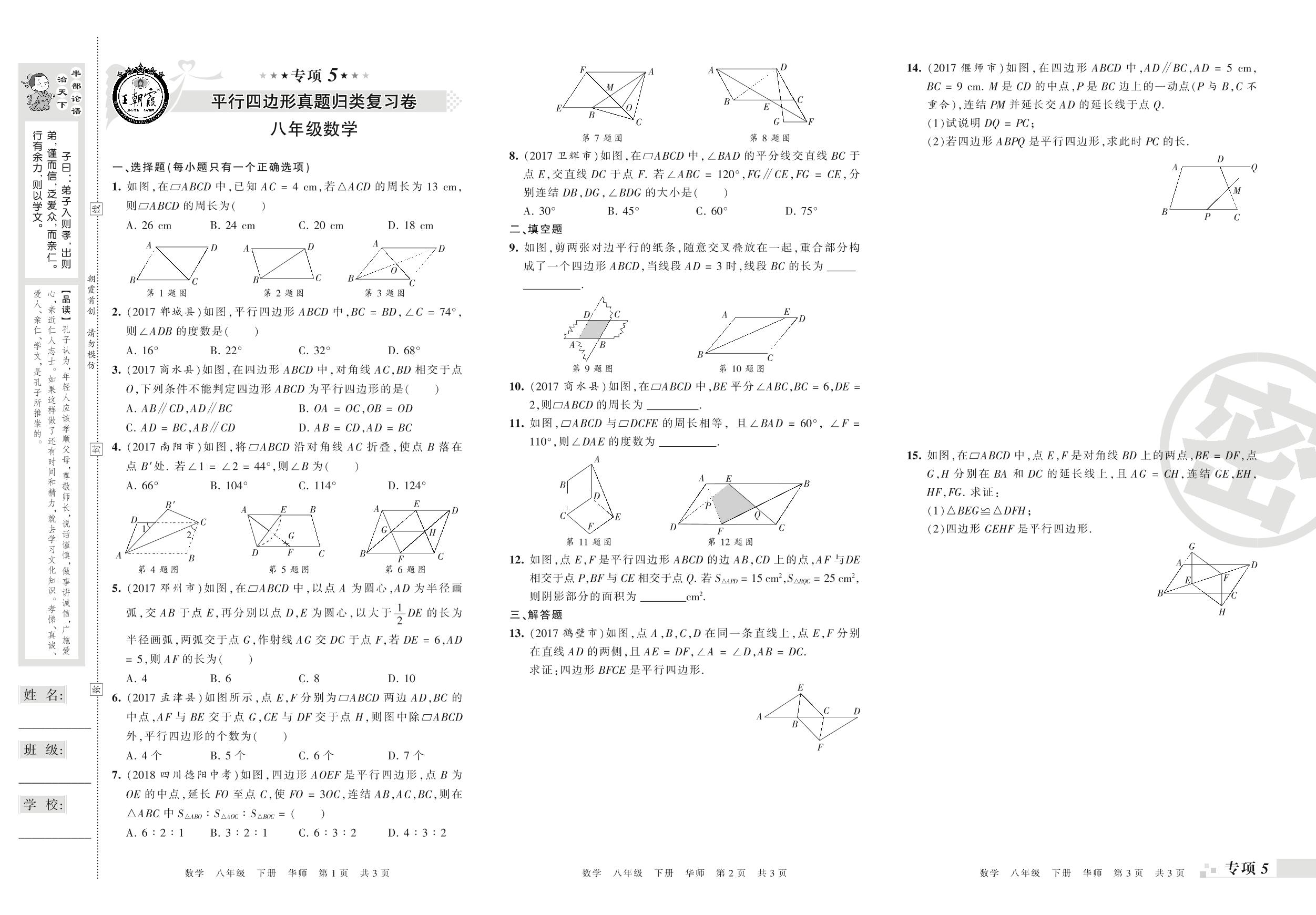 王朝霞期末专项卷——平行四边形、特殊的平行四边形(一)真题归类复习卷八年级下册数学(华师版)_R210806104259【0】