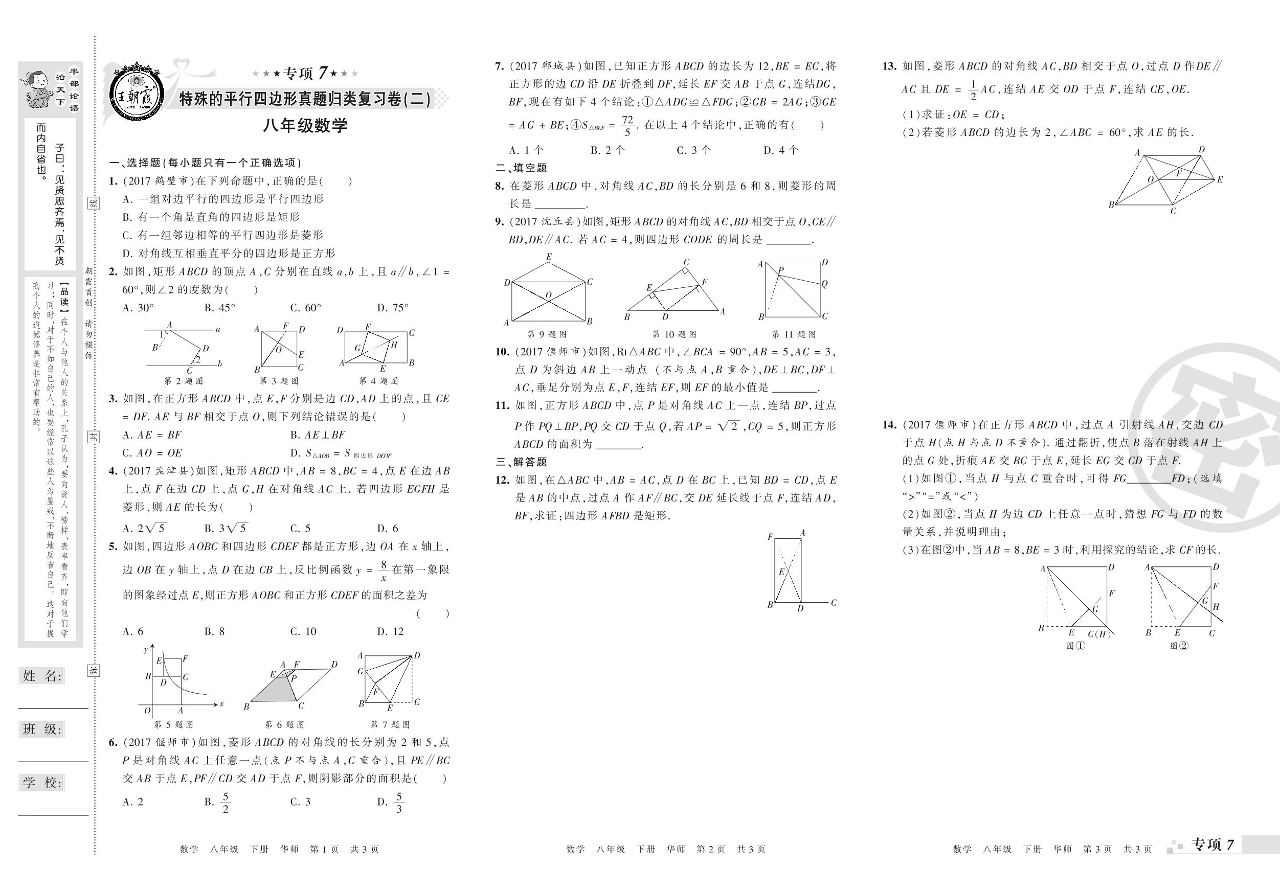 王朝霞期末专项卷——特殊的平行四边形(二)、数据的整理与初步处理真题归类复习卷八年级下册数学(华师版)_R210806104304【0】