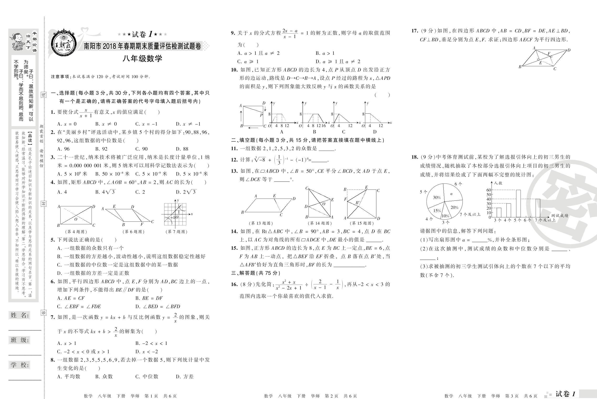 2017-2018学年第二学期南阳市八年级数学试卷(华师版)_R210806104311【1】