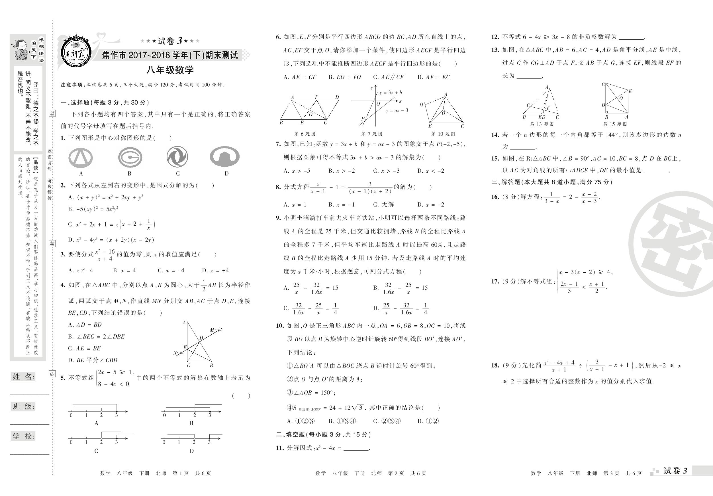 2017-2018学年第二学期焦作市八年级数学试卷(北师版)【3】