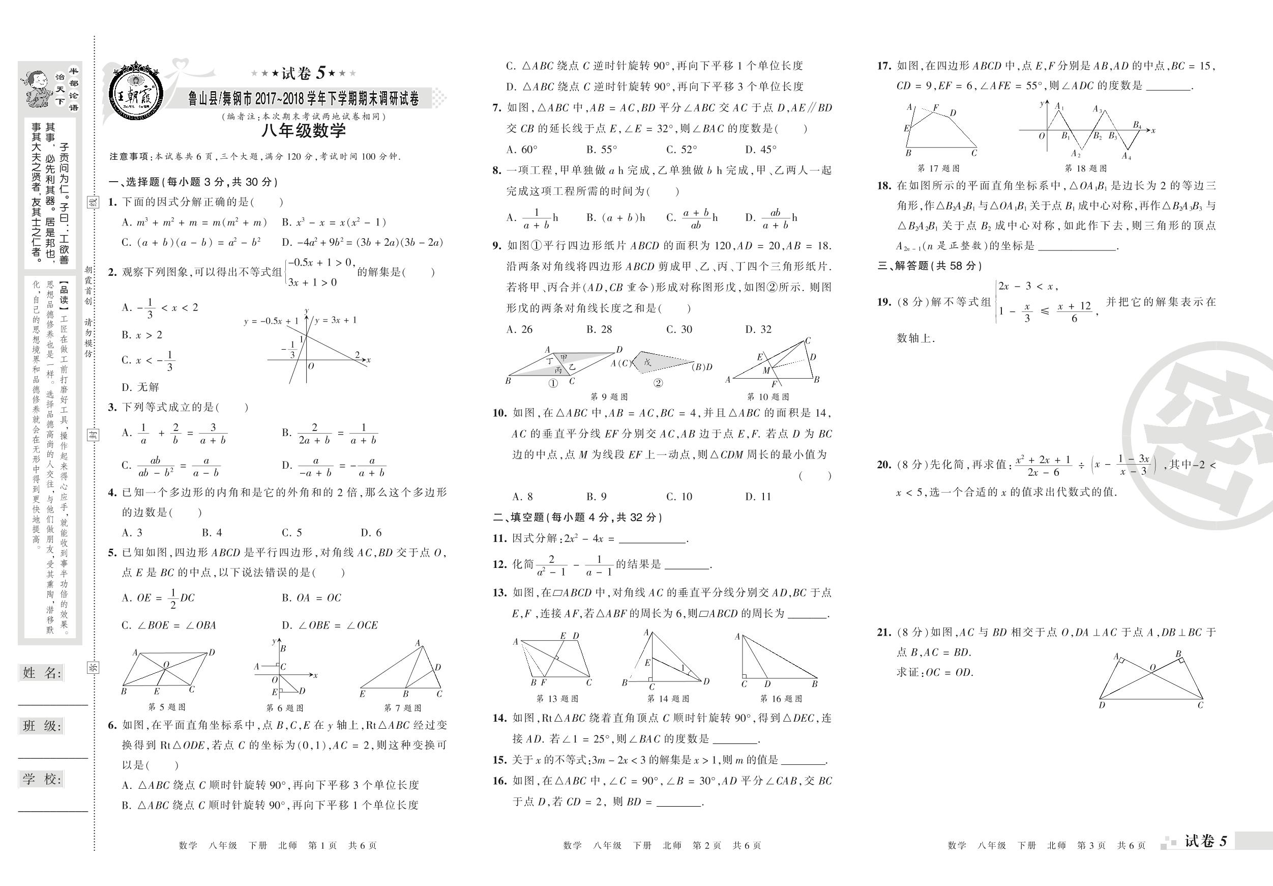 2017-2018学年第二学期鲁山县、舞钢市八年级数学试卷(北师版)【5】