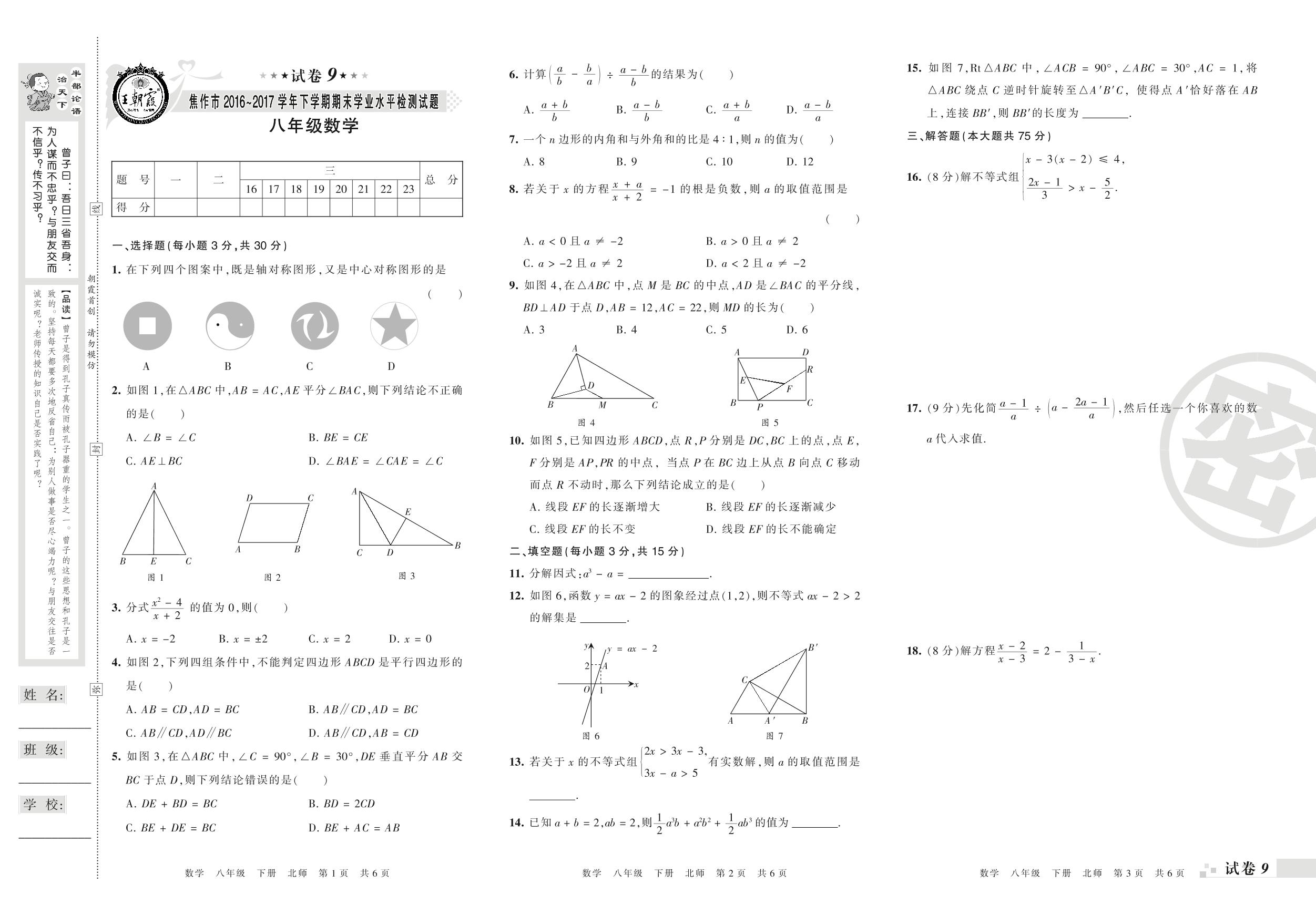 2016-2017学年第二学期焦作市八年级数学试卷(北师版)【9】