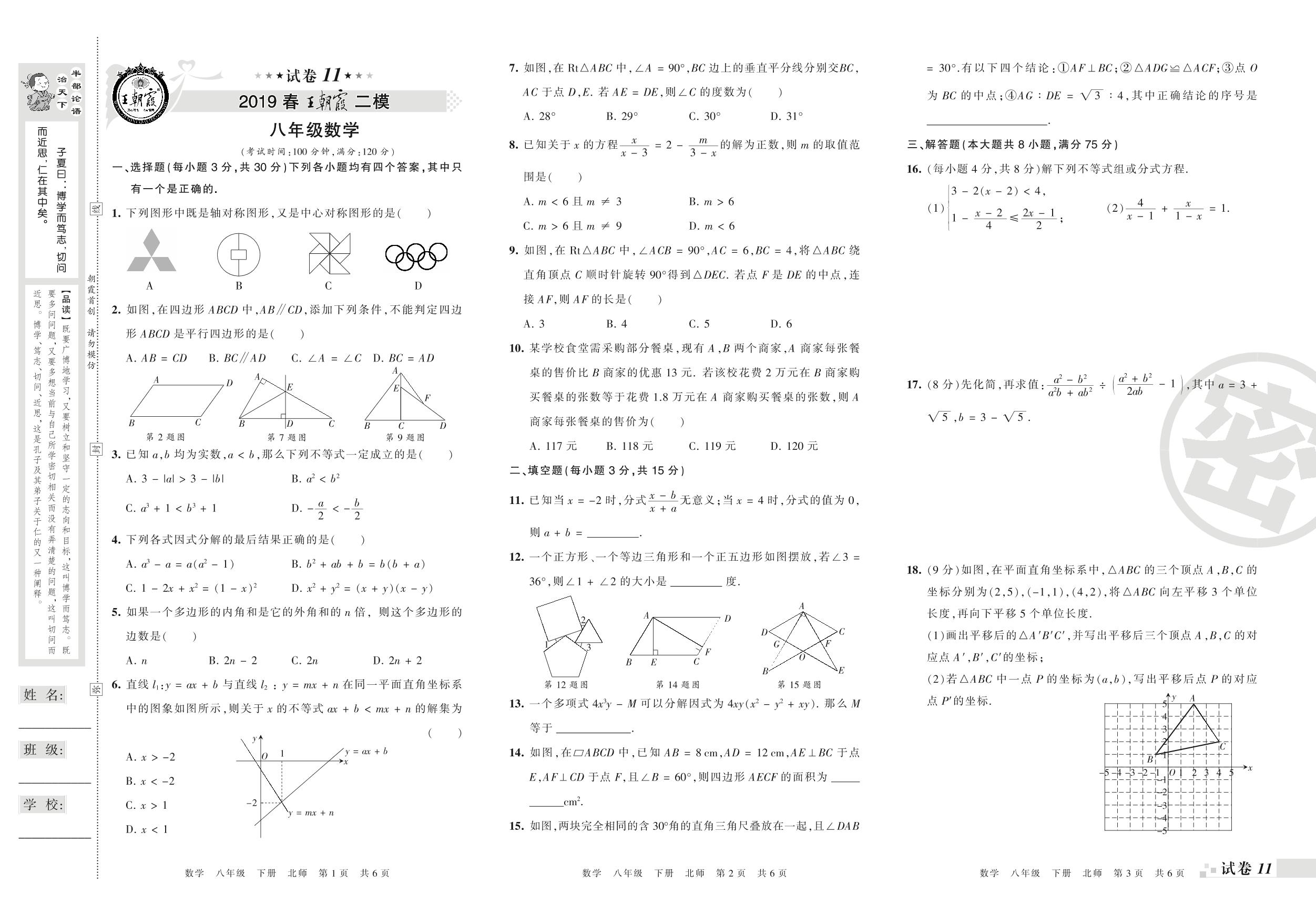 王朝霞期末模拟卷八年级下册数学(北师版)_R210806104527【11】