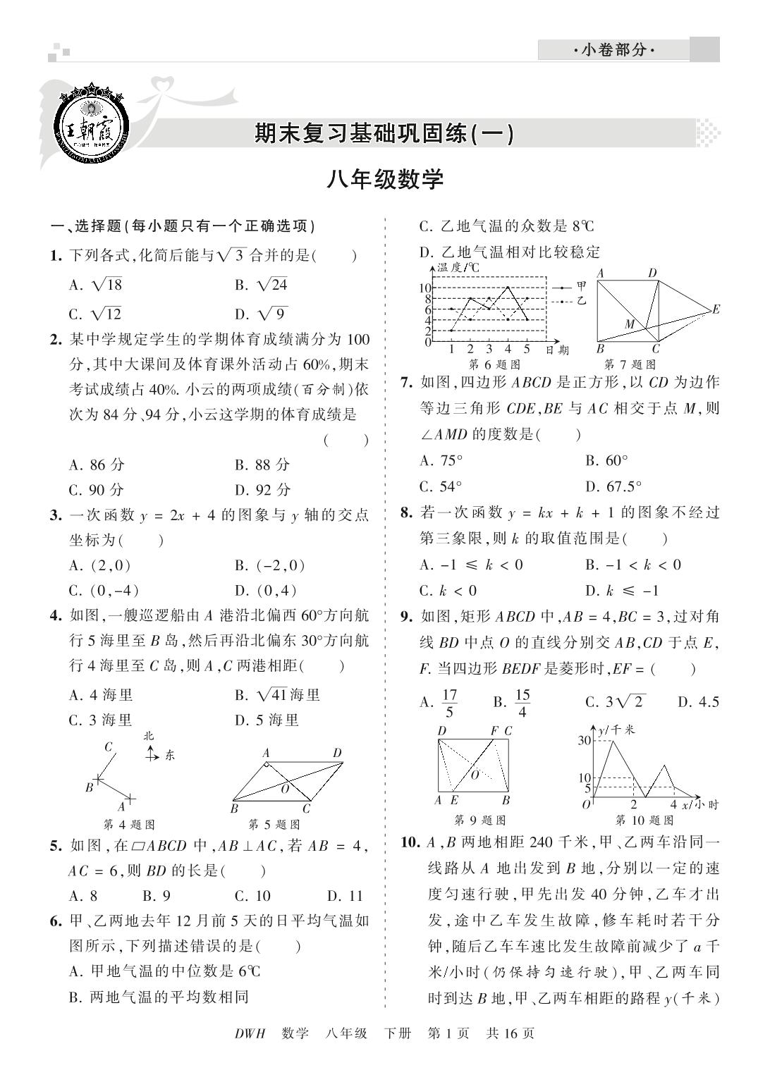 王朝霞期末复习基础巩固练八年级下册数学(人教版)_R210806104538【0】
