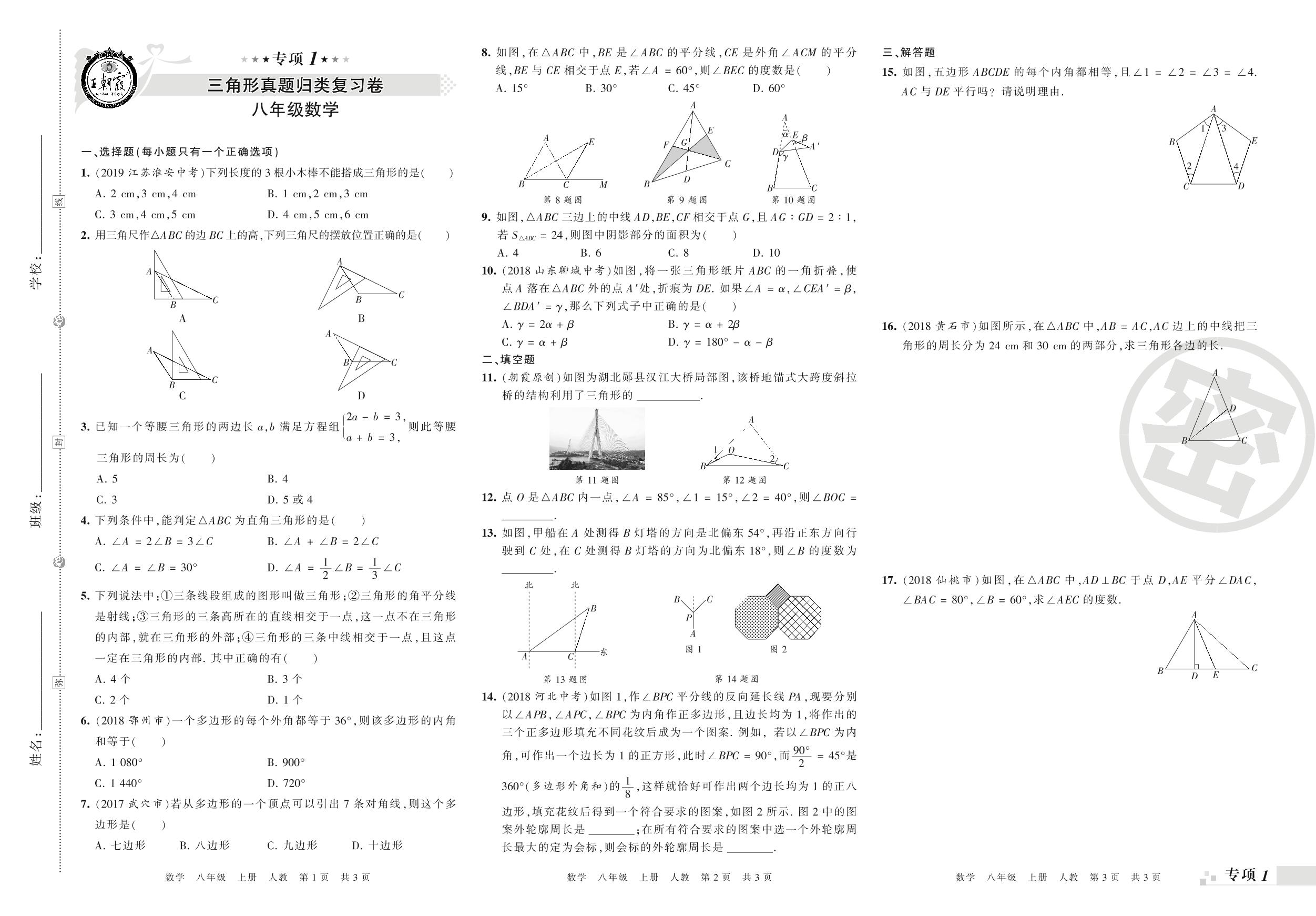 王朝霞期末专项卷——三角形、全等三角形真题归类复习八年级上册数学(人教版)_R210806104655【0】