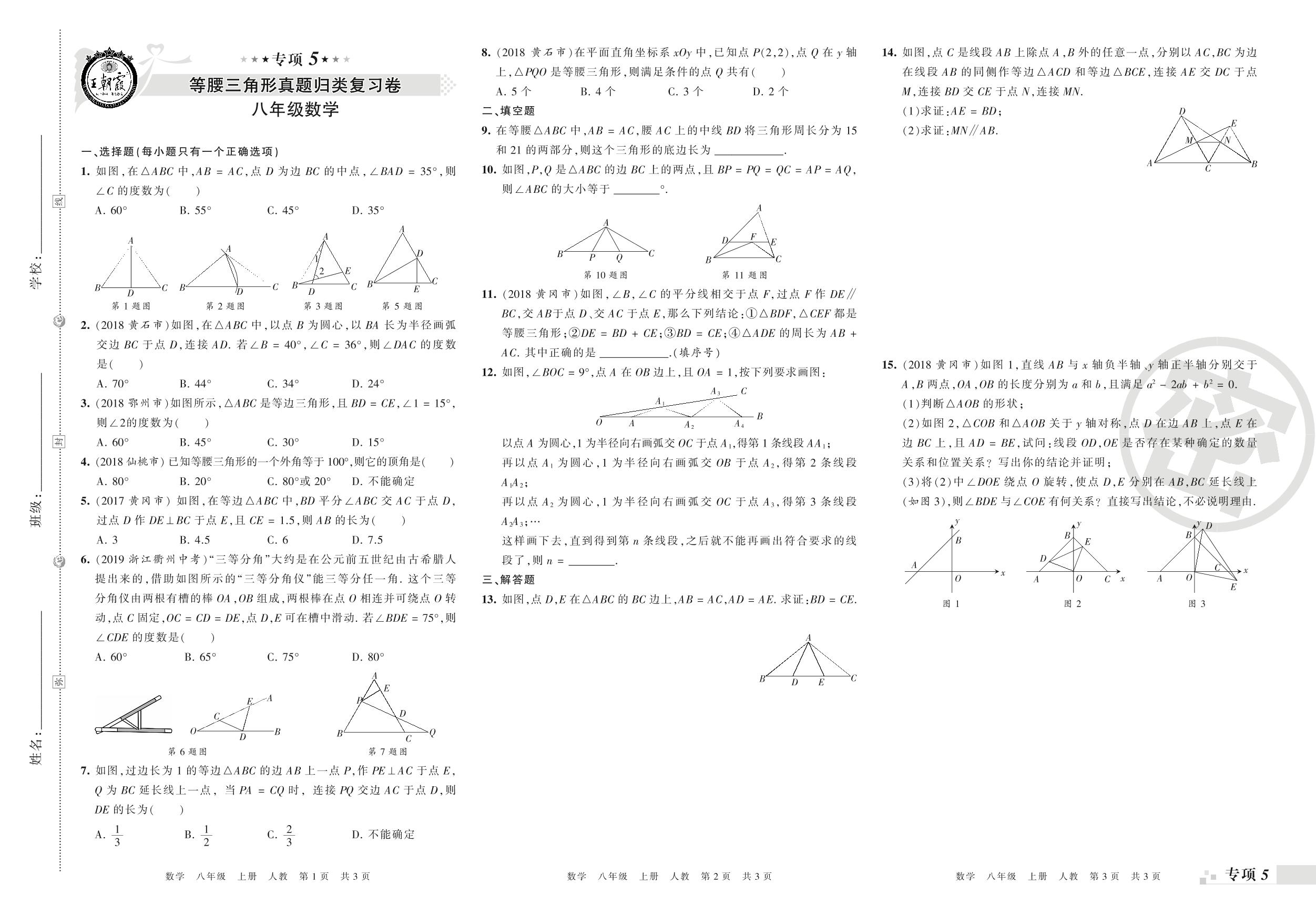 王朝霞期末专项卷——等腰三角形、整式的乘法与因式分解真题归类复习八年级上册数学(人教版)_R210806104703【0】