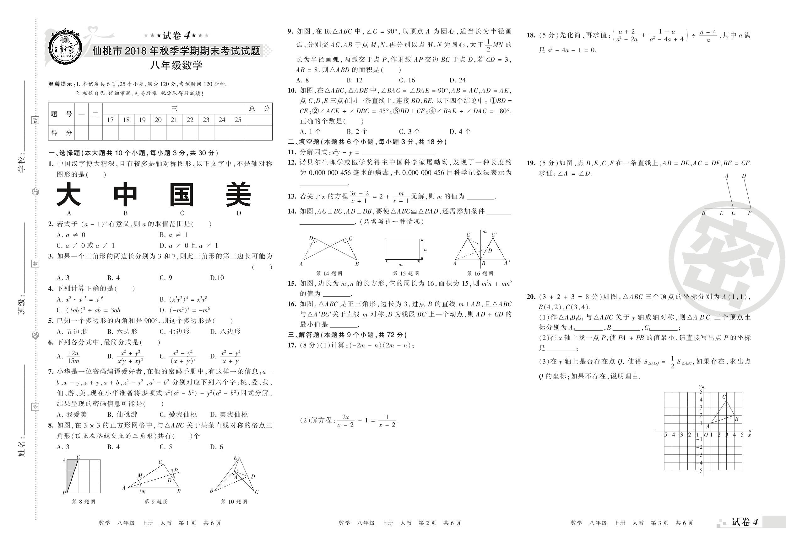 2018-2019学年第一学期仙桃市八年级数学试卷(人教版)【4】