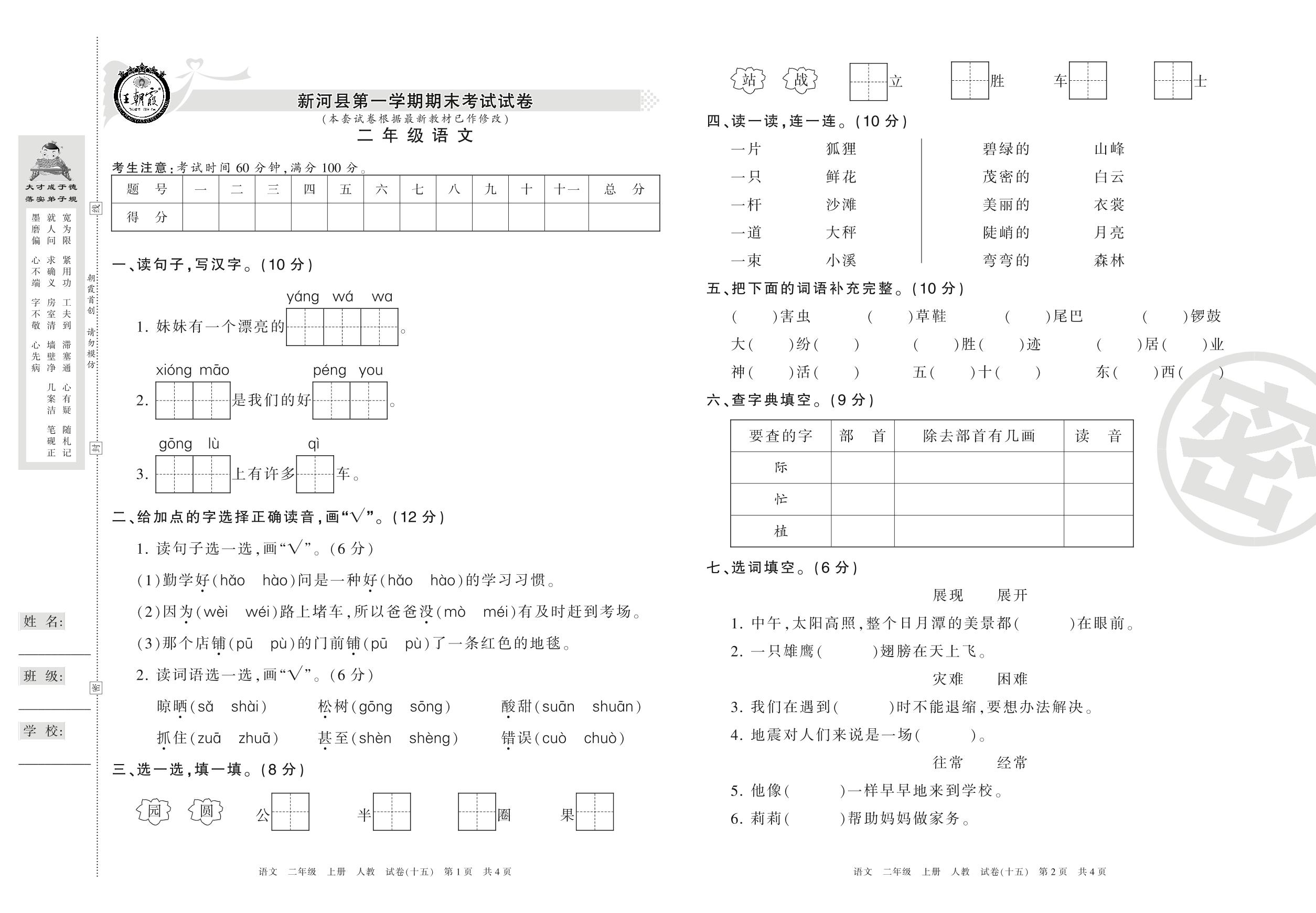 2016-2017学年第一学期邢台市新河县二年级语文试卷(人教版)【15】