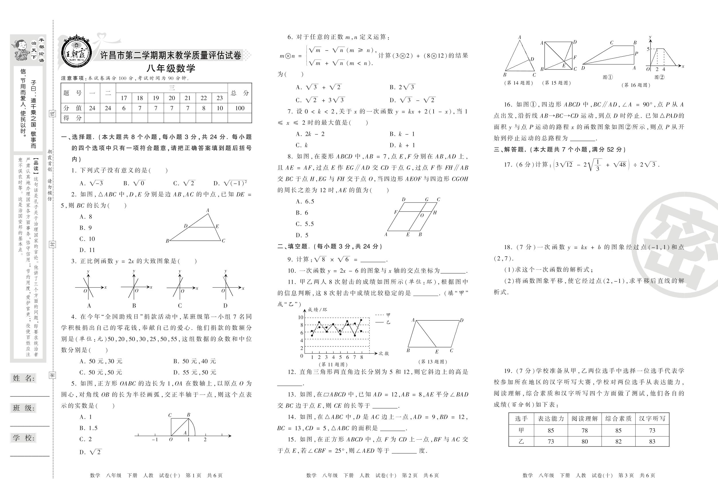 2015-2016学年第二学期许昌市八年级数学试卷(人教版)【10】