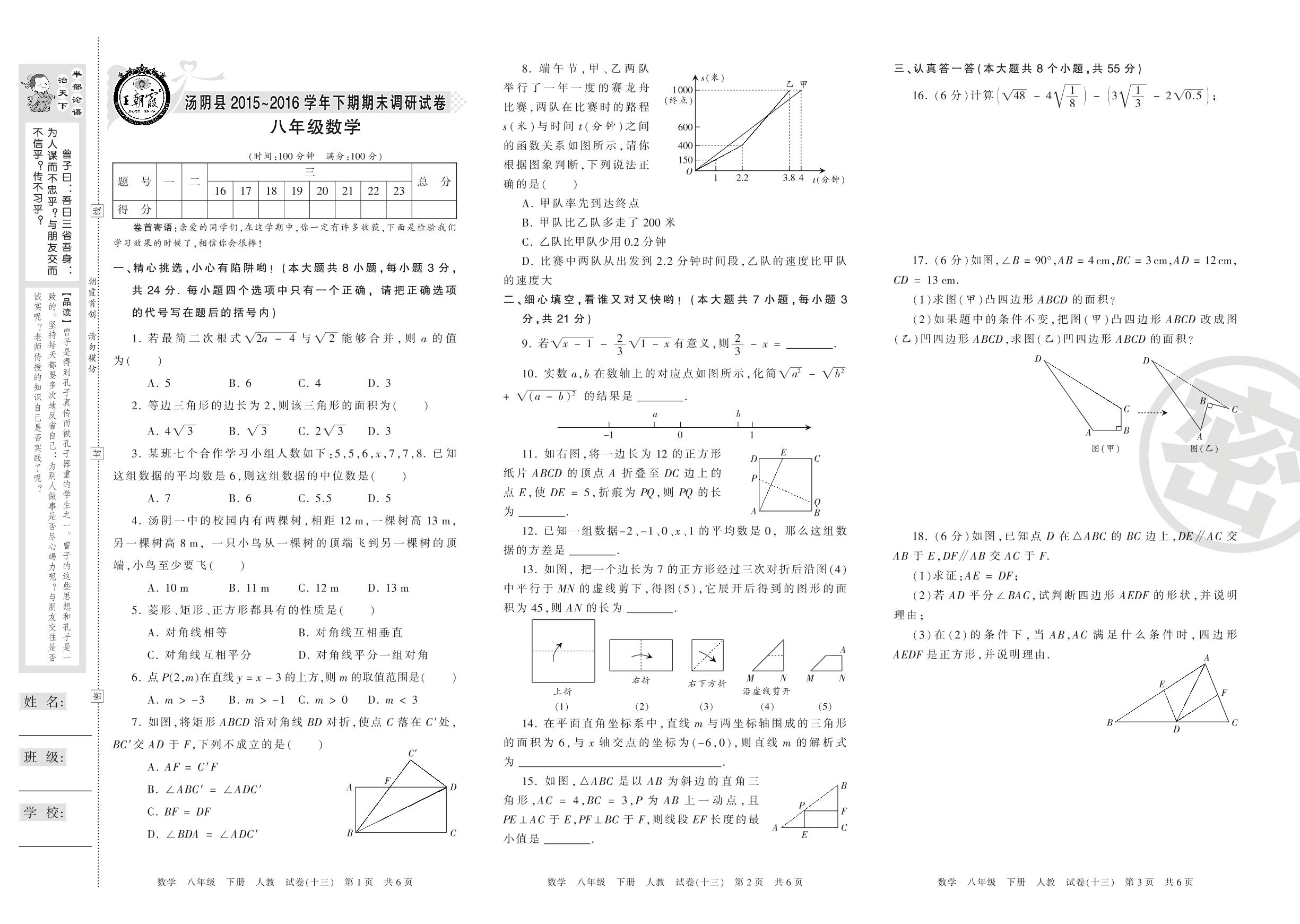 2015-2016学年第二学期安阳市汤阴县八年级数学试卷(人教版)【13】