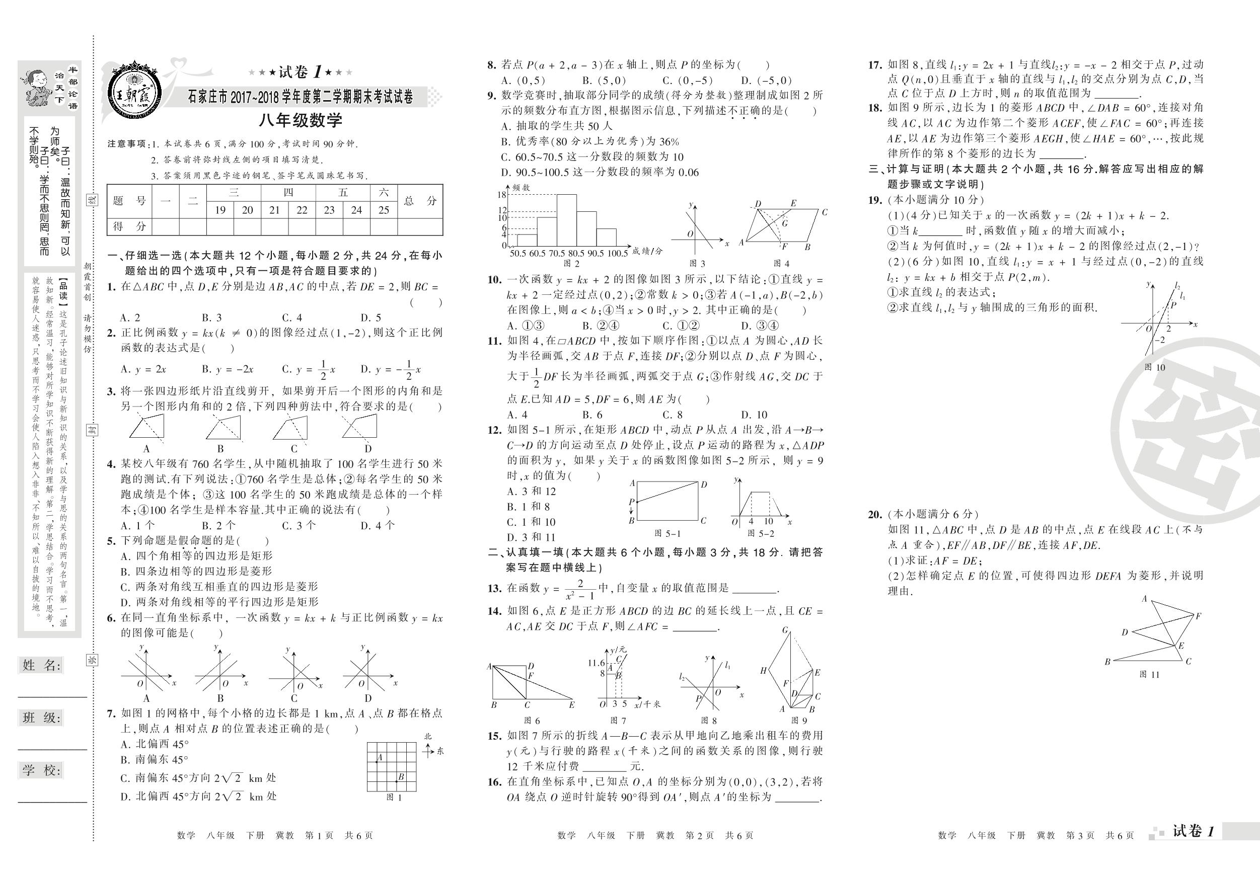 2017-2018学年第二学期石家庄市八年级数学试卷(冀教版)【1】