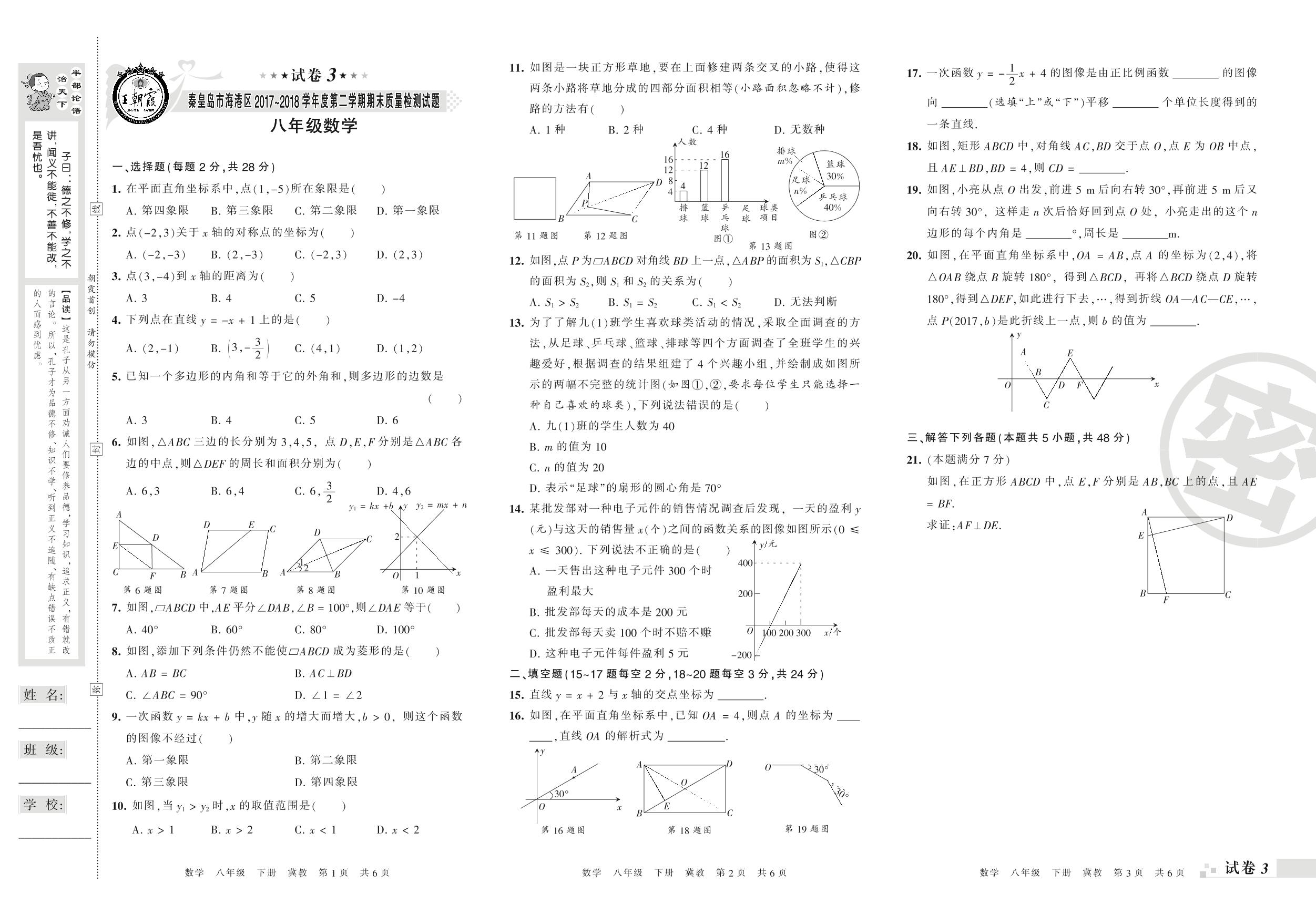 2017-2018学年第二学期秦皇岛市海港区八年级数学试卷(冀教版)【3】