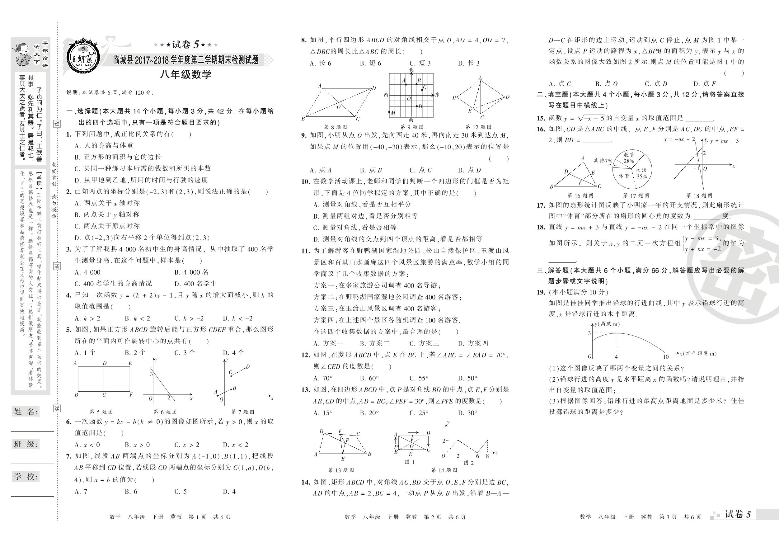 2017-2018学年第二学期邢台市临城县八年级数学试卷(冀教版)【5】