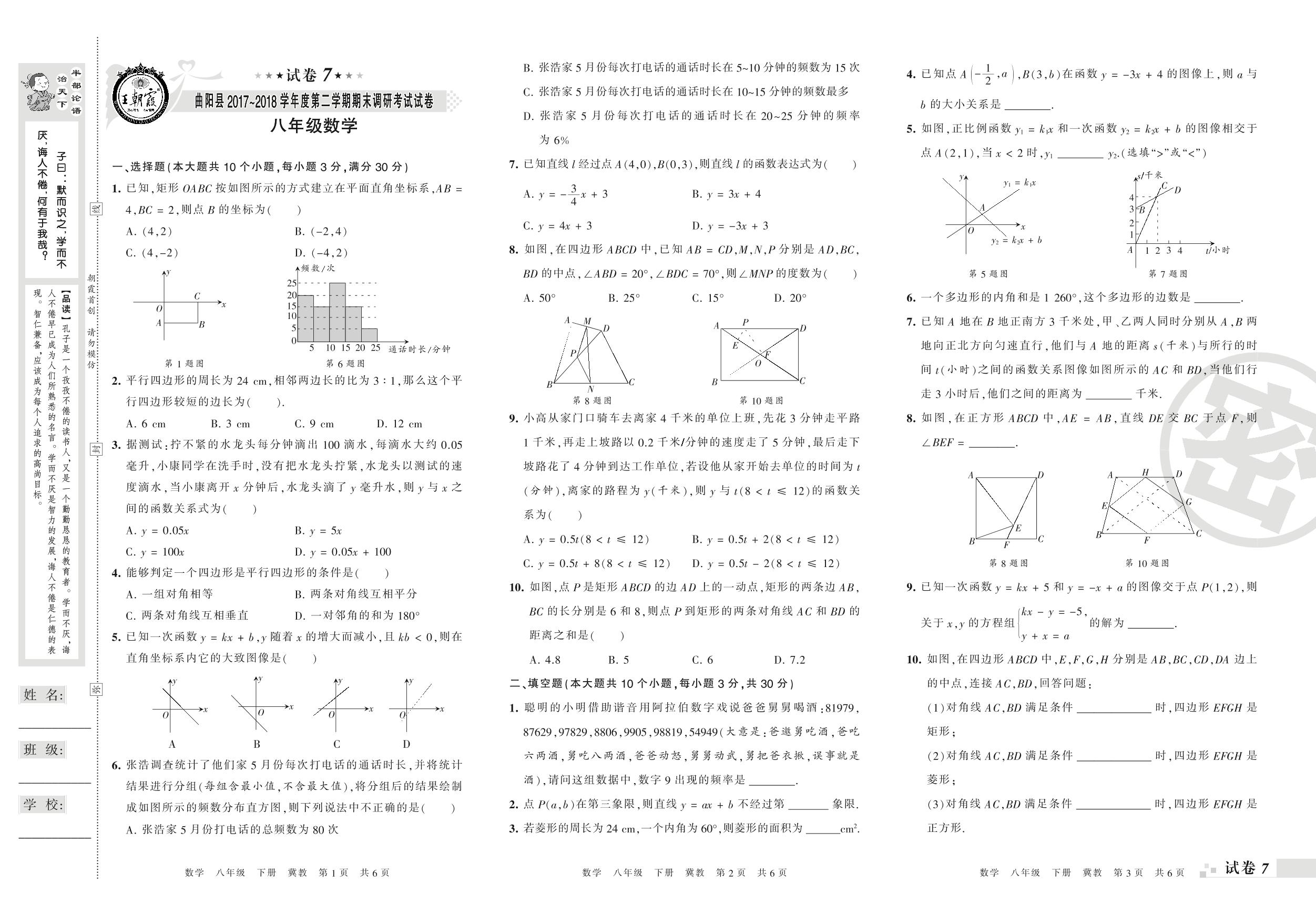 2017-2018学年第二学期保定市曲阳县八年级数学试卷(冀教版)【7】