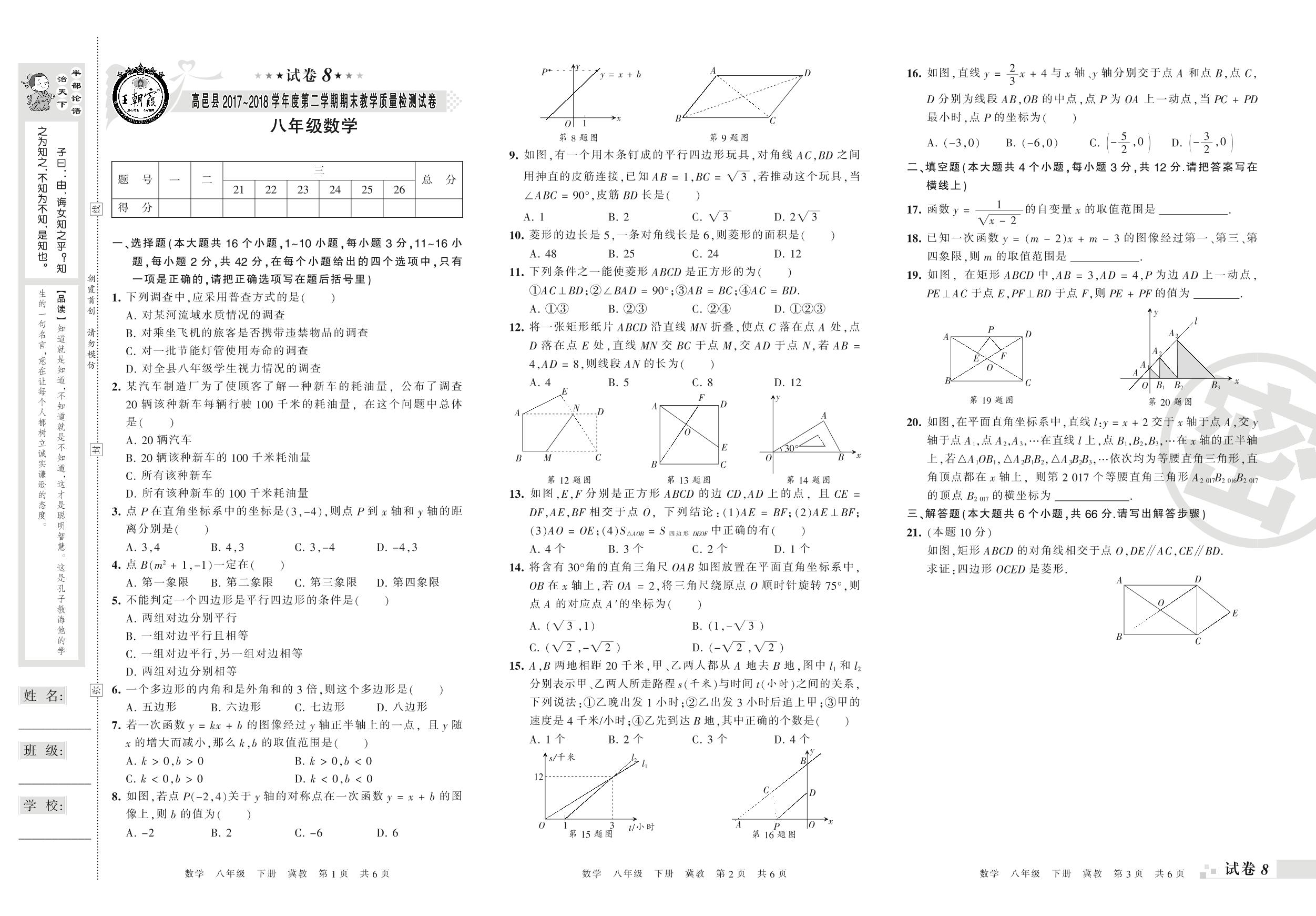 2017-2018学年第二学期石家庄市高邑县八年级数学试卷(冀教版)【8】