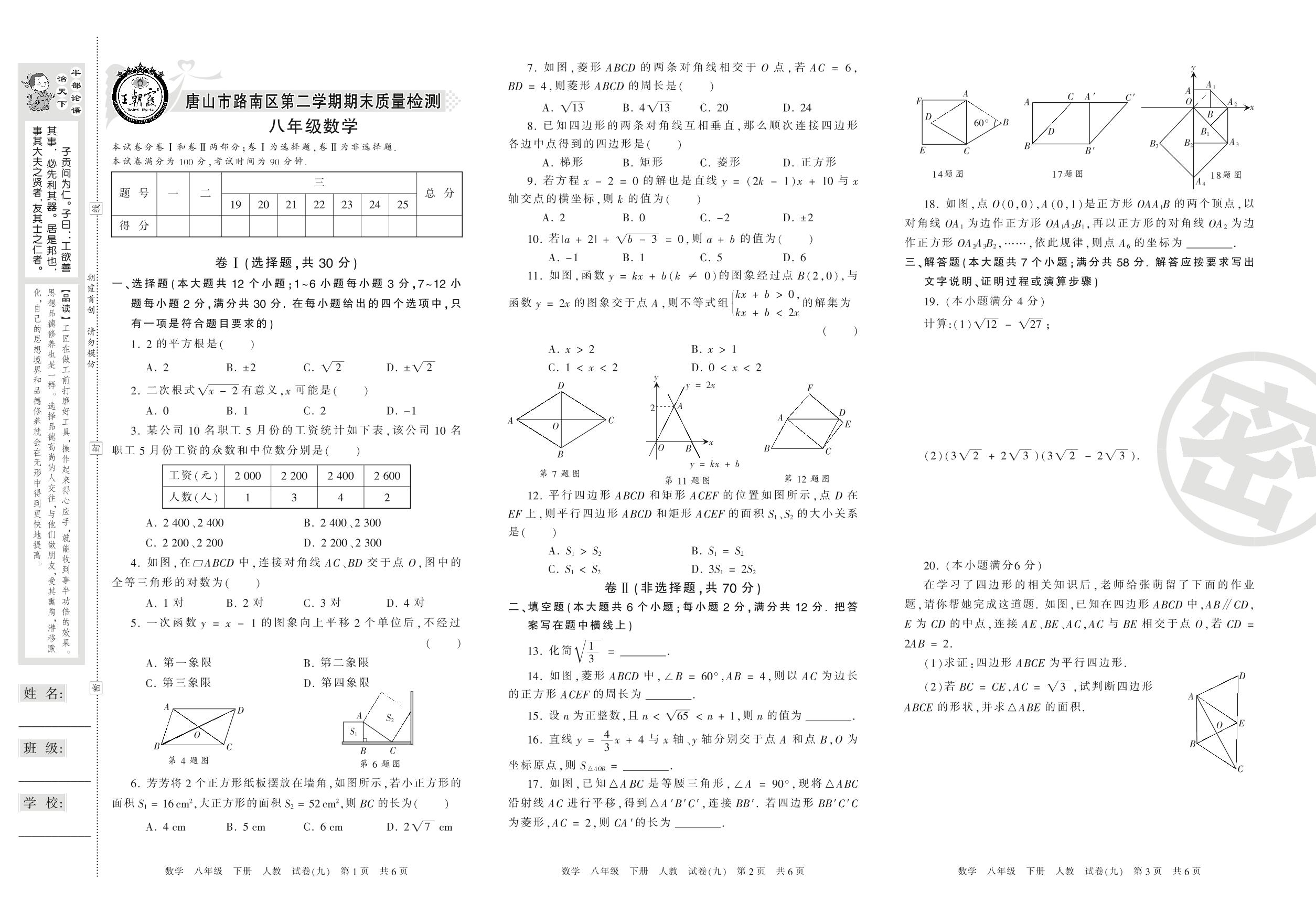 2015-2016学年第二学期唐山市路南区市八年级数学试卷(人教版)【9】
