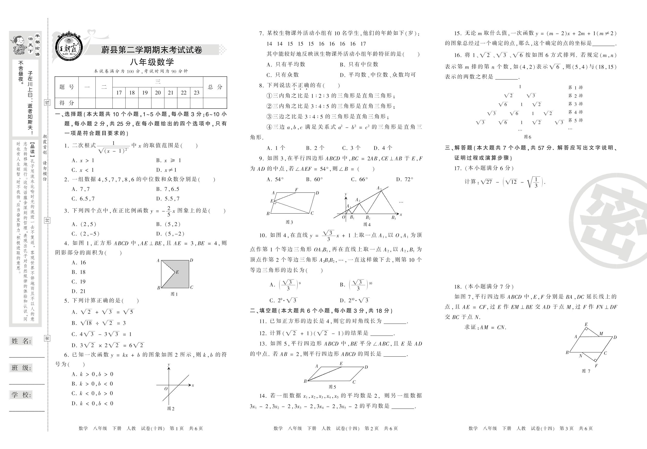 2015-2016学年第二学期张家口市蔚县八年级数学试卷(人教版)【14】