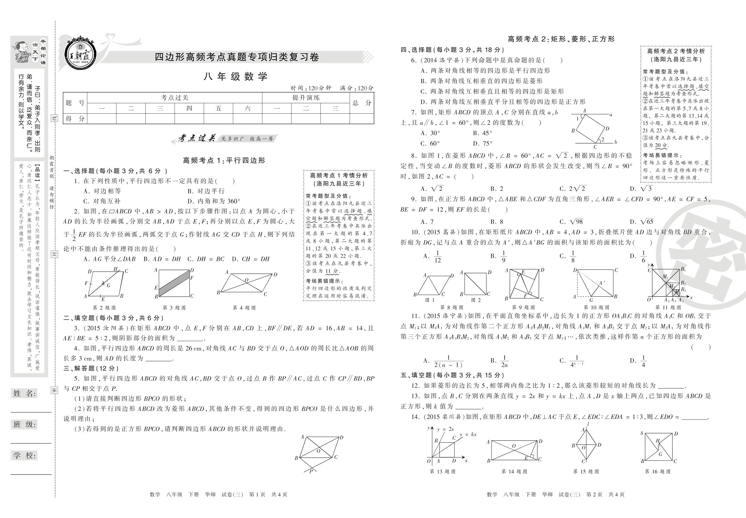 王朝霞期末专项卷八年级下册数学(华师版)_R210806105735【3】