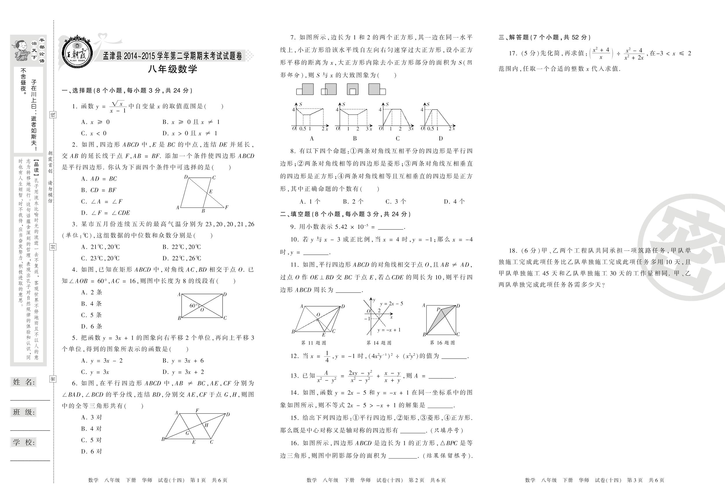 2014-2015学年第二学期洛阳市孟津县八年级数学试卷(华师版)【14】