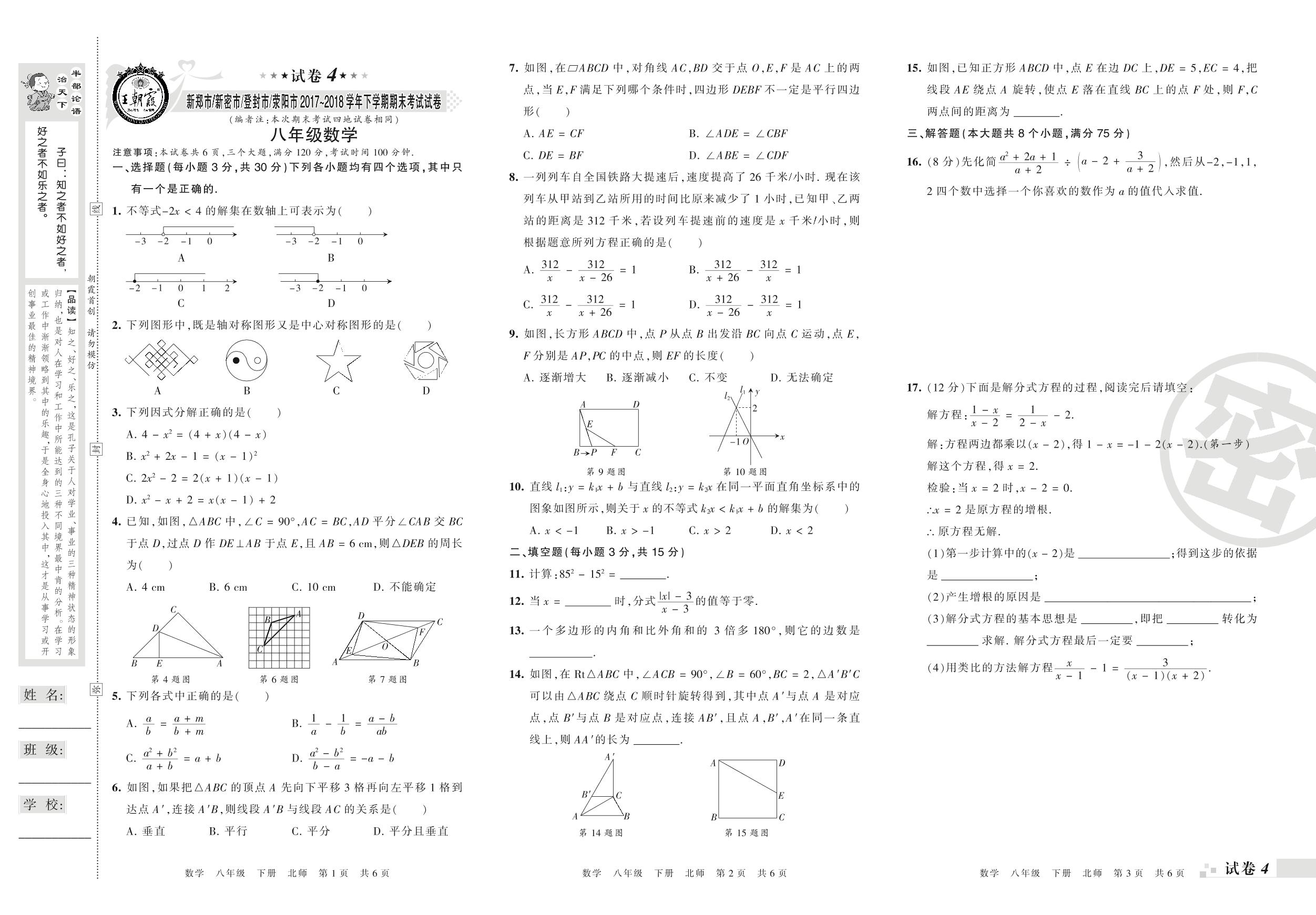 2017-2018学年第二学期新郑市、新密市、登封市、荥阳市八年级数学试卷(北师版)_R220120112013078【4】