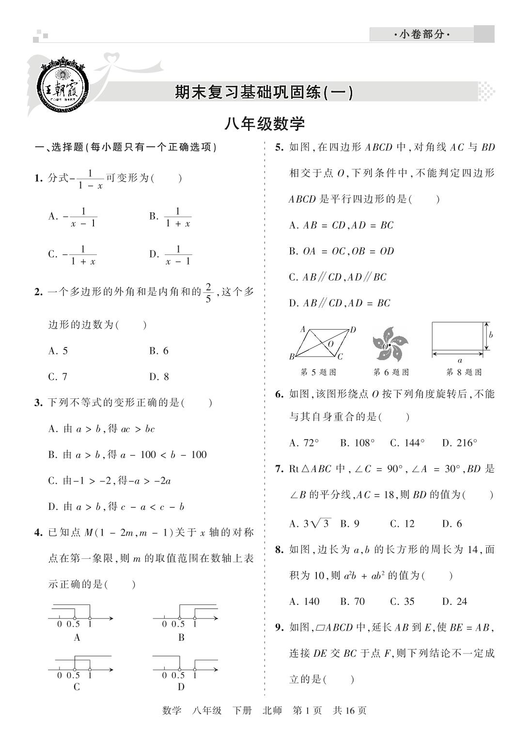 王朝霞期末复习基础巩固练八年级下册数学(北师版)_R210806105937【0】
