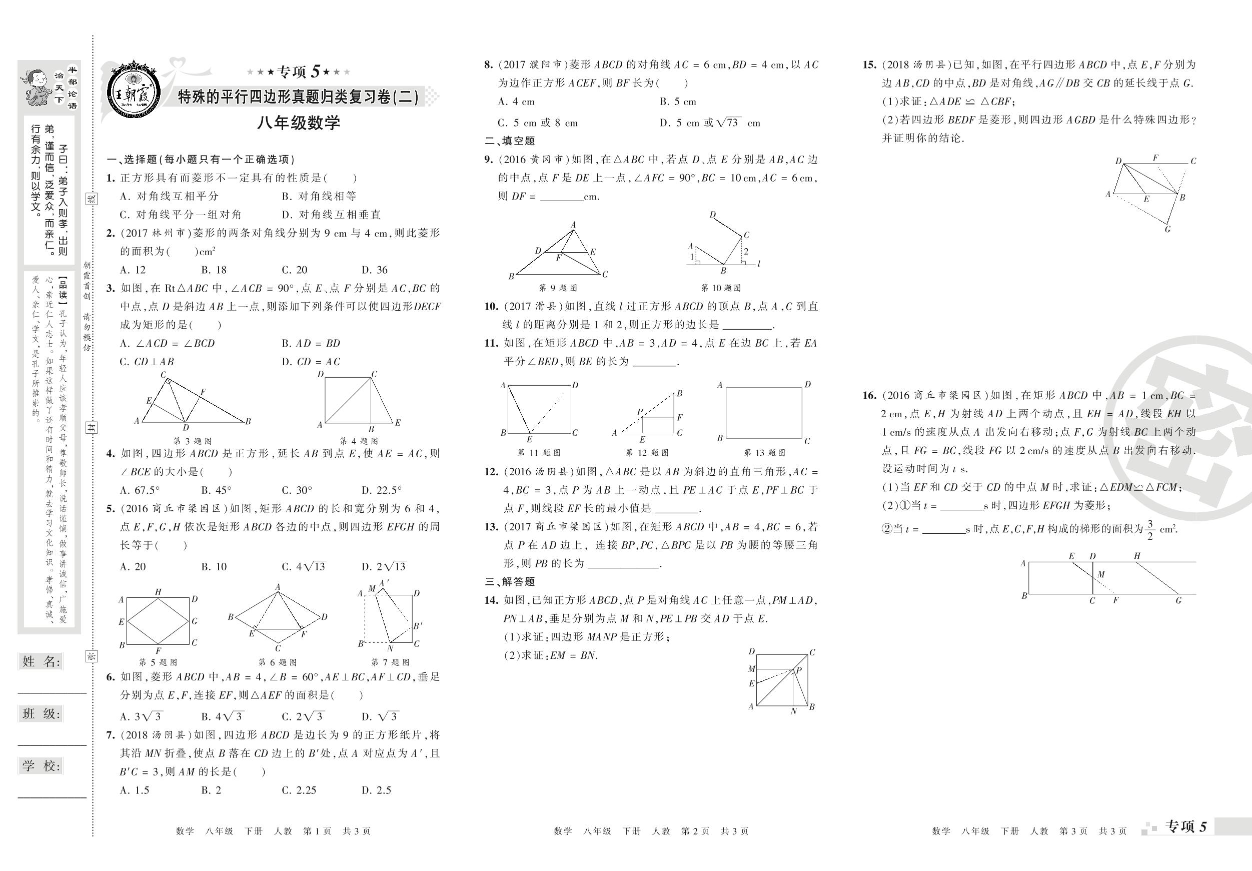 王朝霞期末专项卷——特殊的平行四边形(二)、函数及一次函数的图象与性质真题归类复习卷八年级下册数学(人教版)_R210806105957【0】