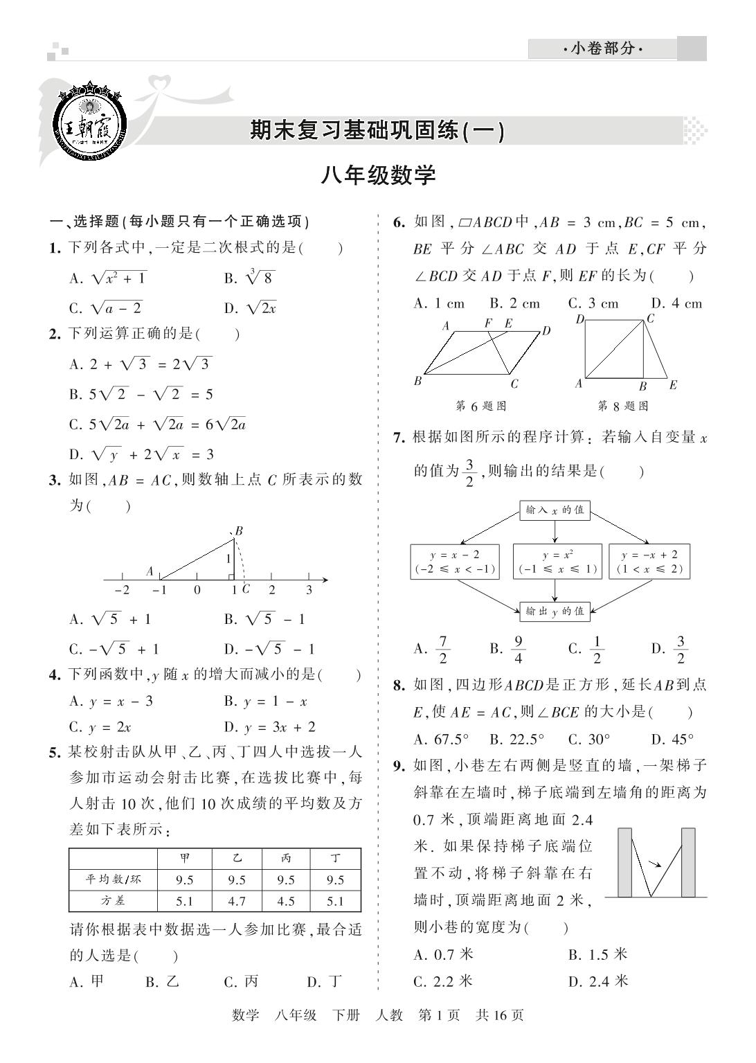 王朝霞期末复习基础巩固练八年级下册数学(人教版)_R210806110047【0】