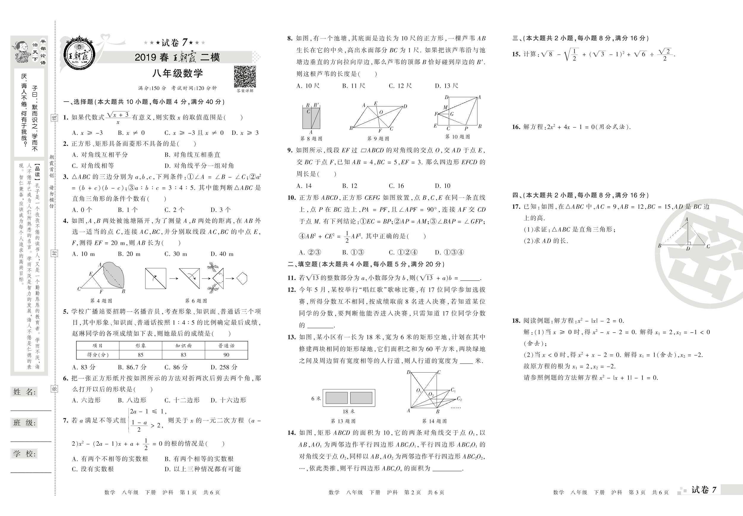 王朝霞期末模拟卷八年级下册数学(沪科版)_R210806110259【7】