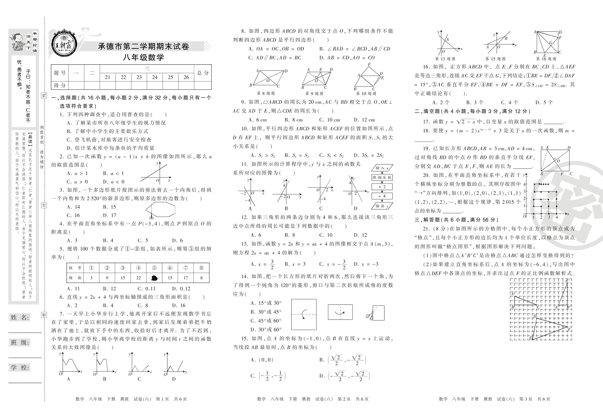 2015-2016学年第二学期承德市八年级数学试卷(冀教版)【6】