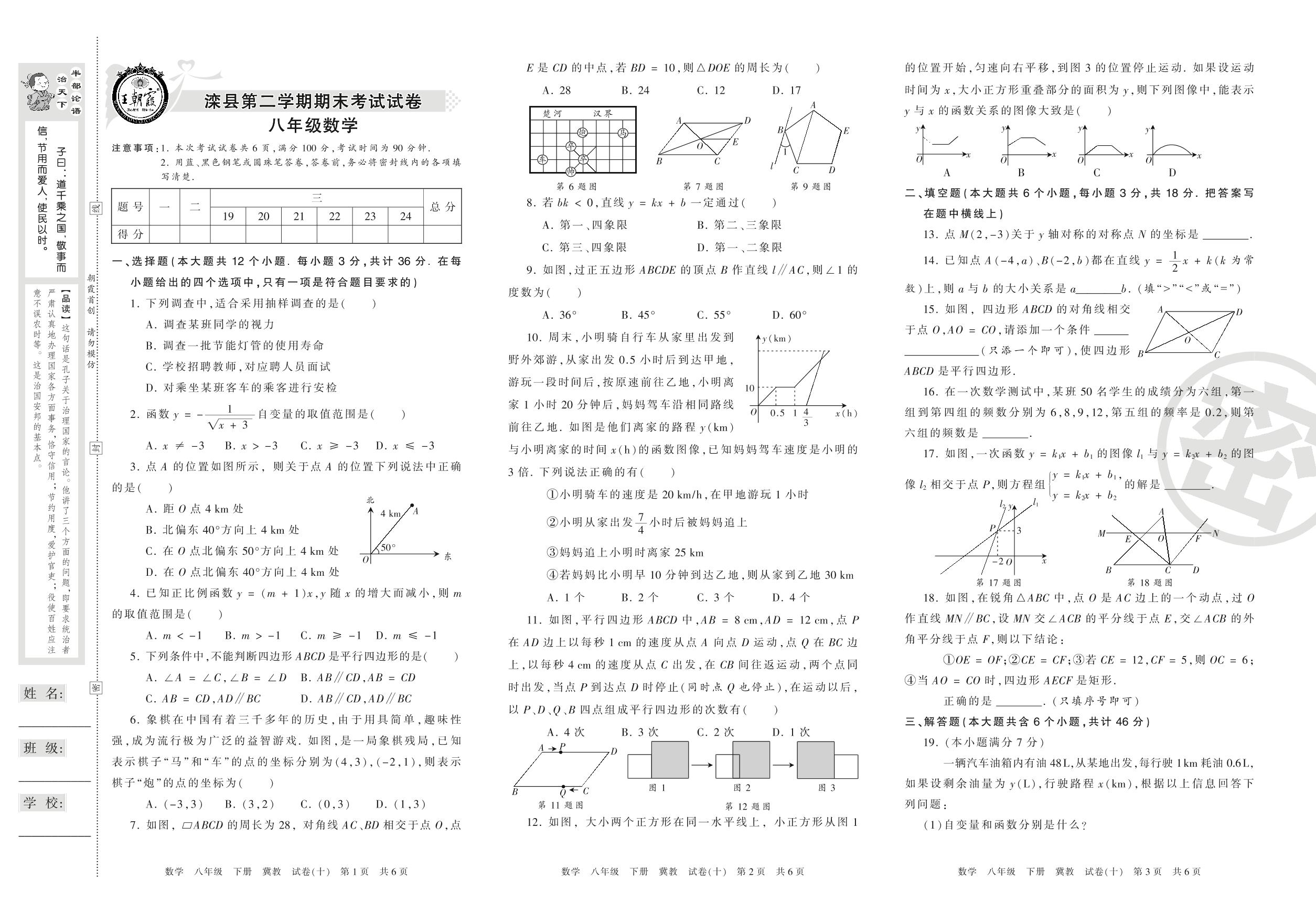 2015-2016学年第二学期唐山市滦县八年级数学试卷(冀教版)【10】