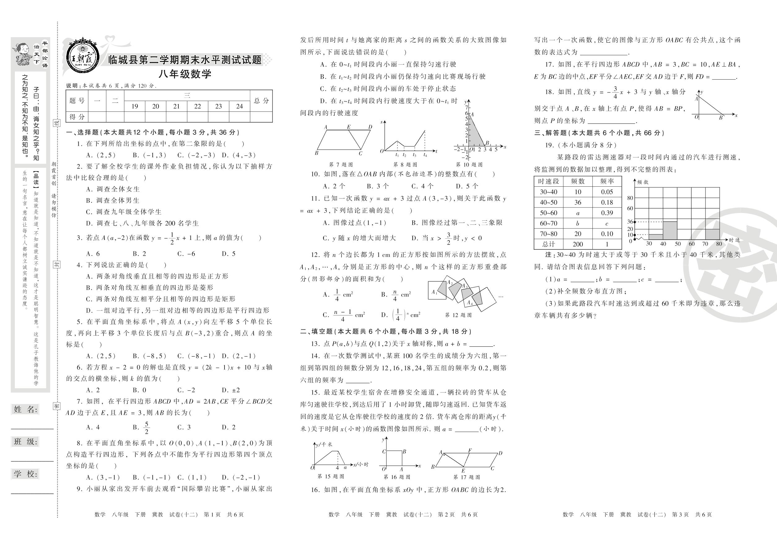 2015-2016学年第二学期邢台市临城县八年级数学试卷(冀教版)【12】