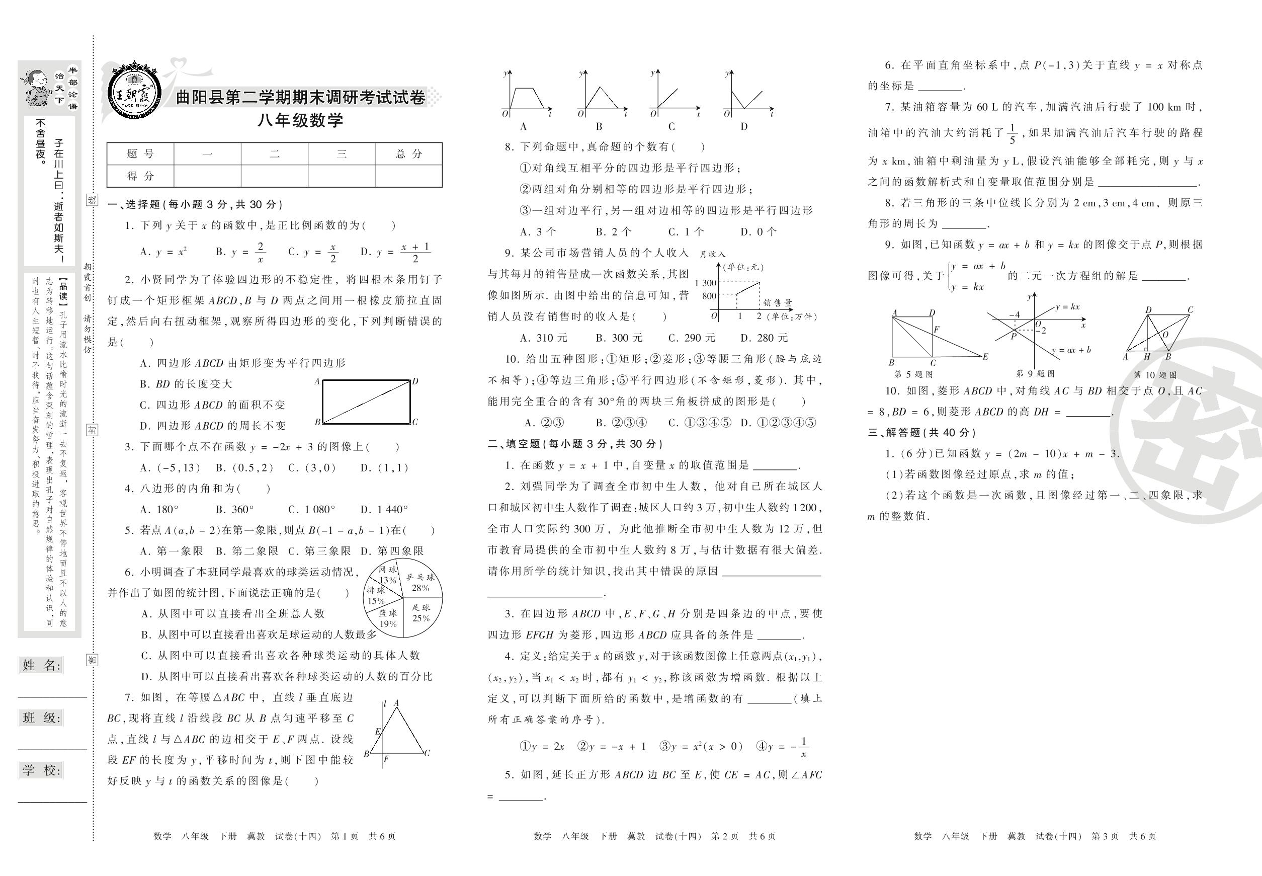 2015-2016学年第二学期保定市曲阳县八年级数学试卷(冀教版)【14】