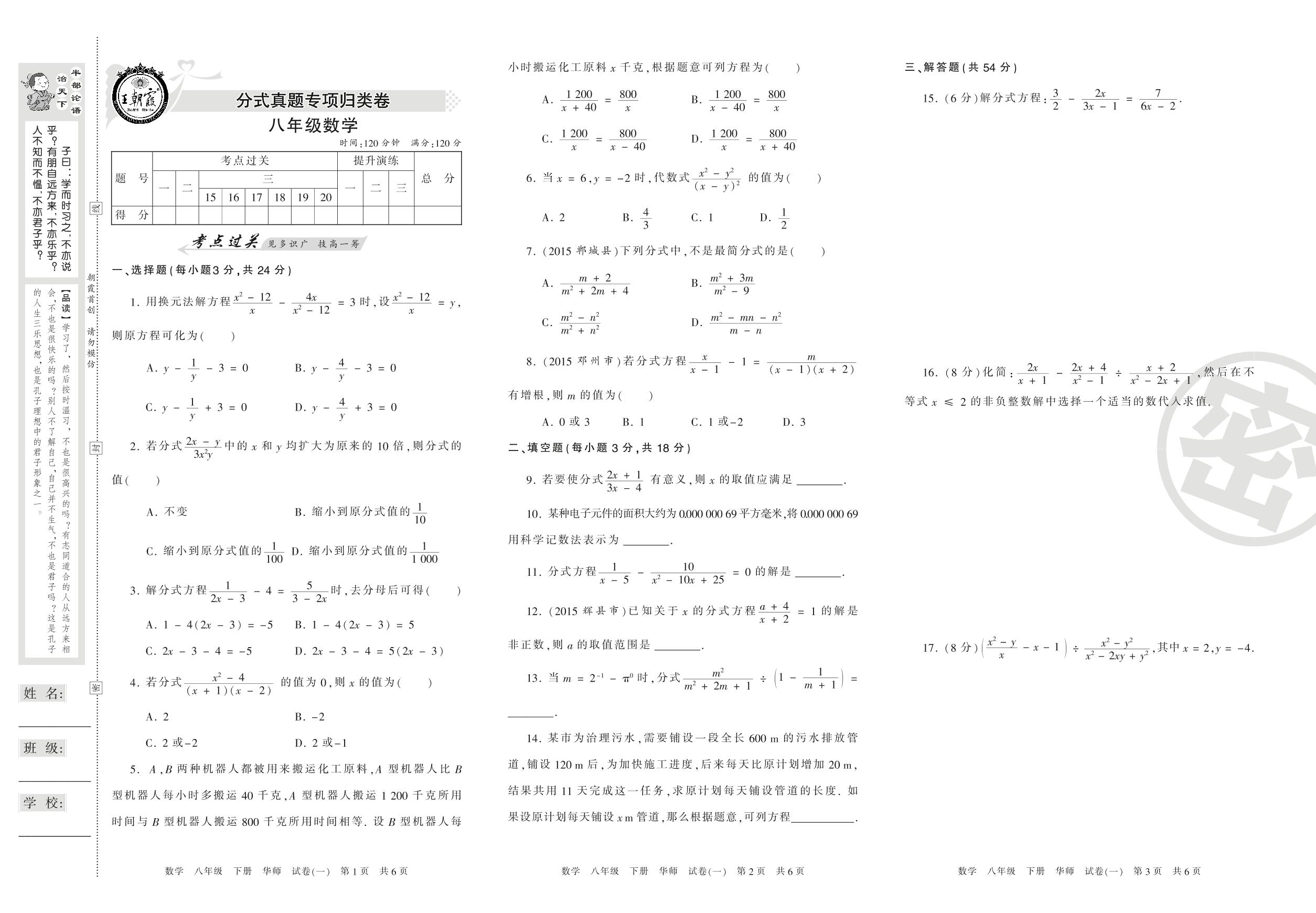 王朝霞期末专项卷八年级下册数学(华师版)_R210806110423【1】