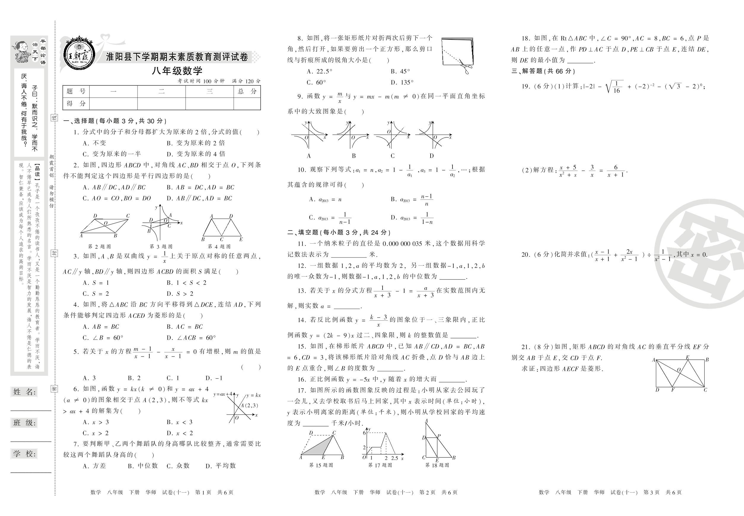 2015-2016学年第二学期周口市淮阳县八年级数学试卷(华师版)【11】