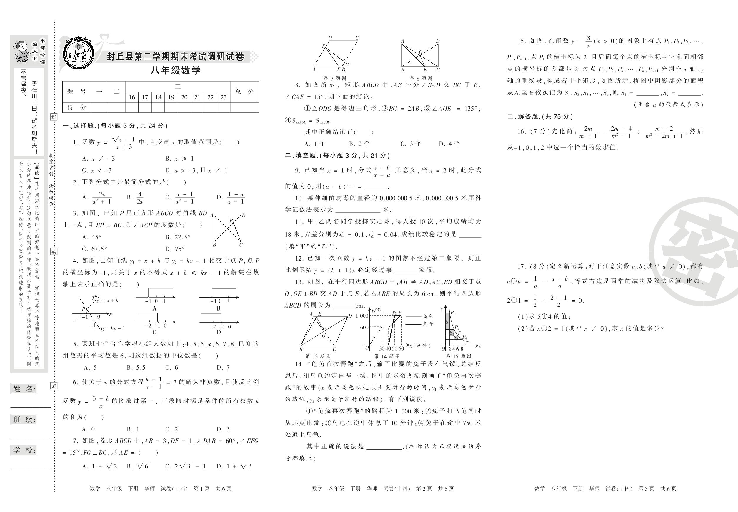 2015-2016学年第二学期新乡市封丘县八年级数学试卷(华师版)【14】