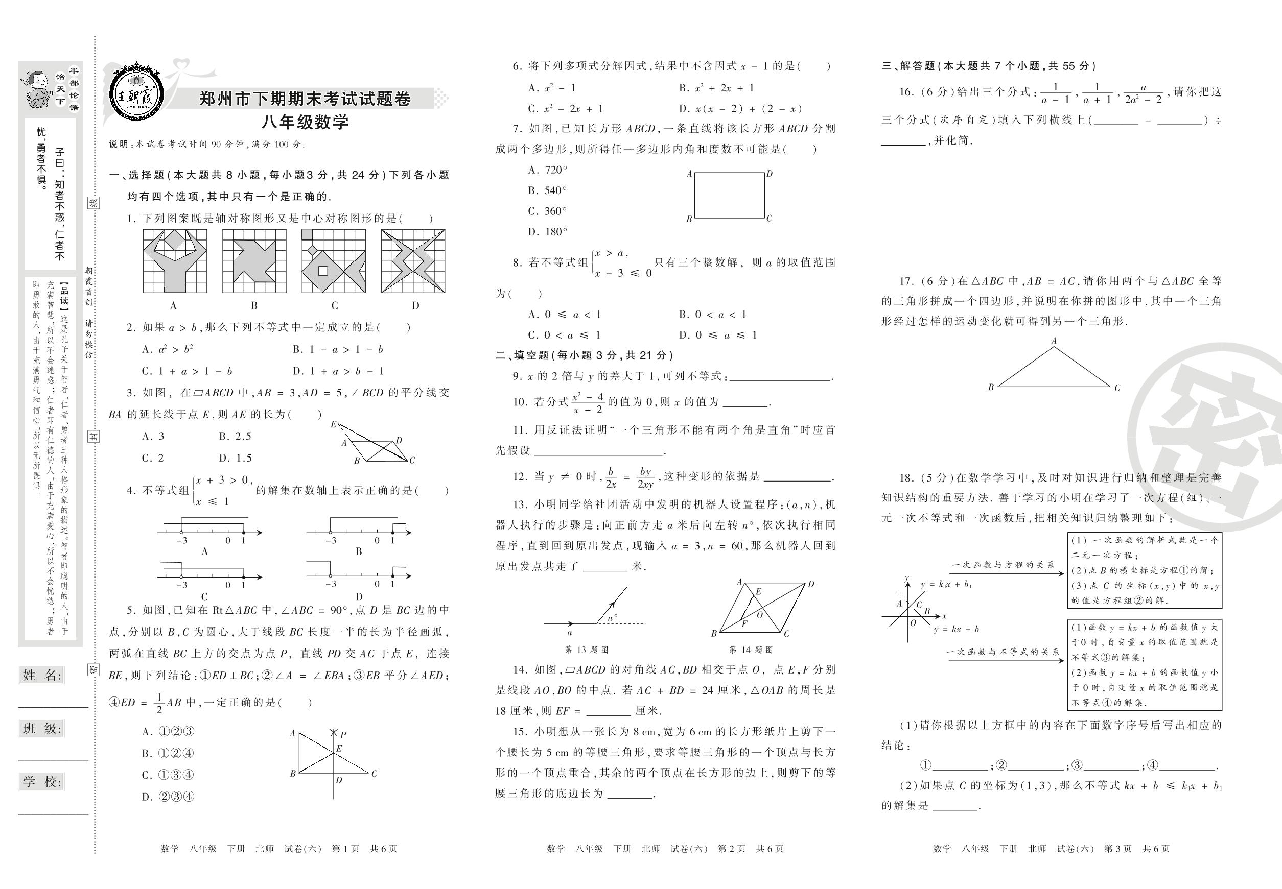 2015-2016学年第二学期郑州市八年级数学试卷(北师版)_R210806110549【6】
