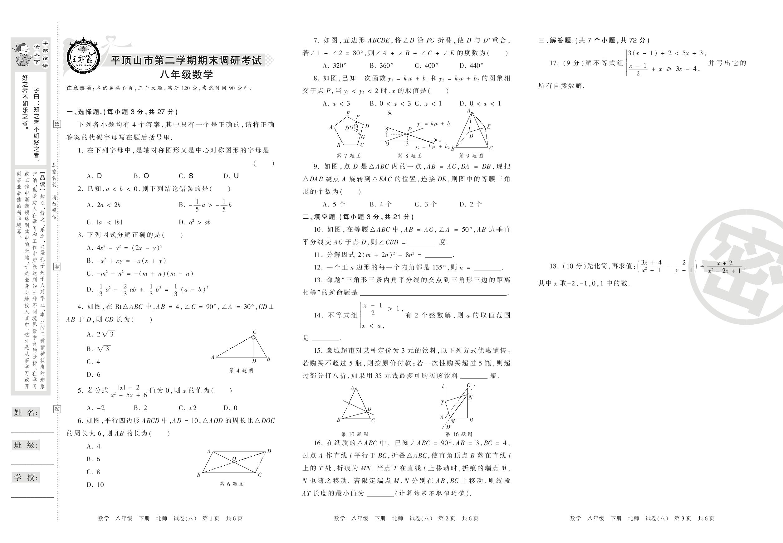 2015-2016学年第二学期平顶山市八年级数学试卷(北师版)【8】