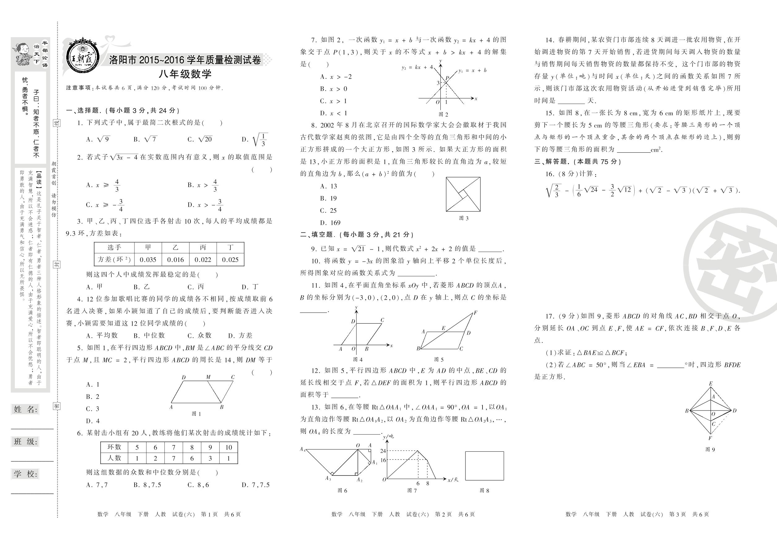 2015-2016学年第二学期洛阳市八年级数学试卷(人教版)_R210806110726【6】