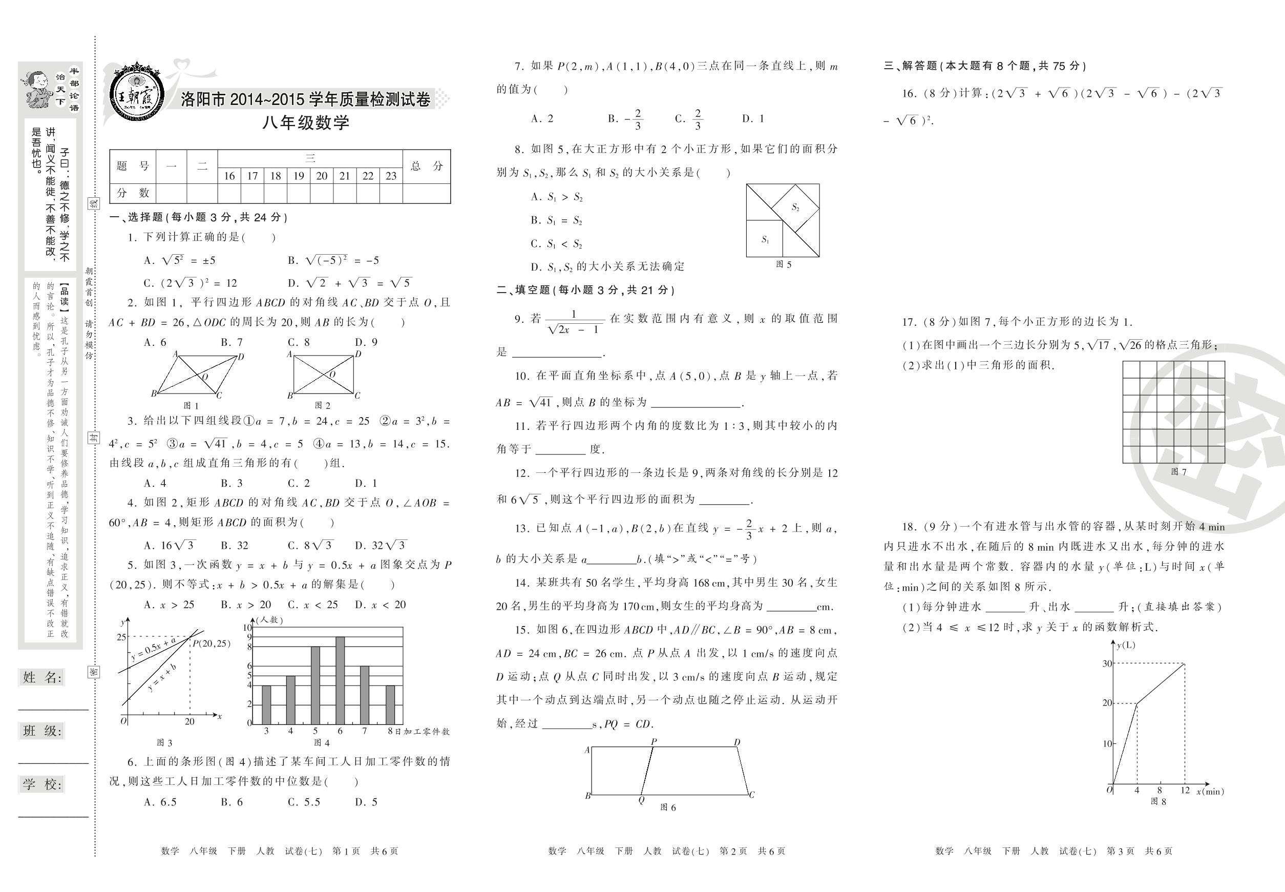 2014-2015学年第二学期洛阳市八年级数学试卷(人教版)【7】
