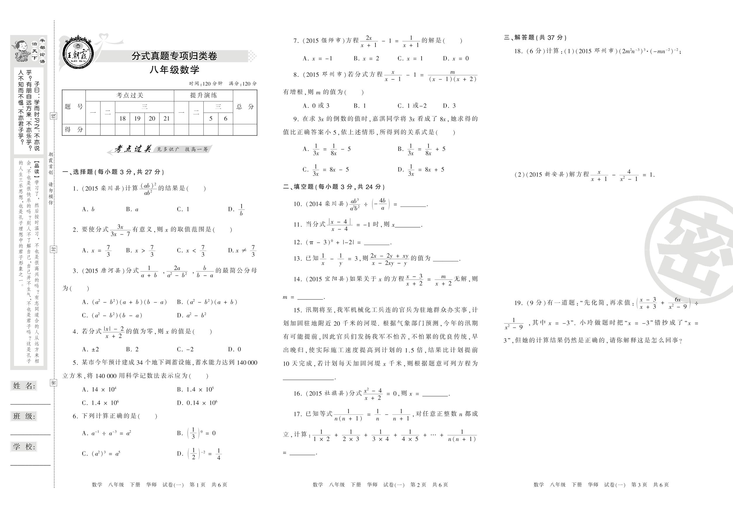 王朝霞期末专项卷八年级下册数学(华师版)_R210806111346【1】