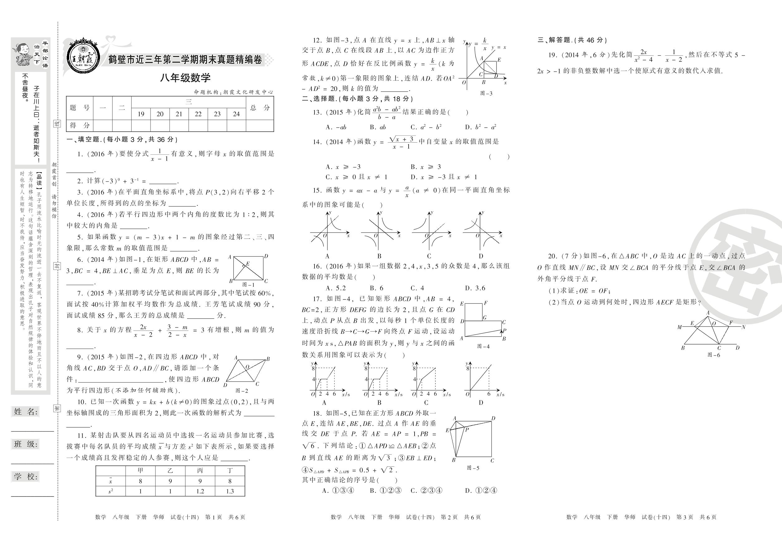 鹤壁市近三年精编(二)八年级下册数学(华师版)【14】