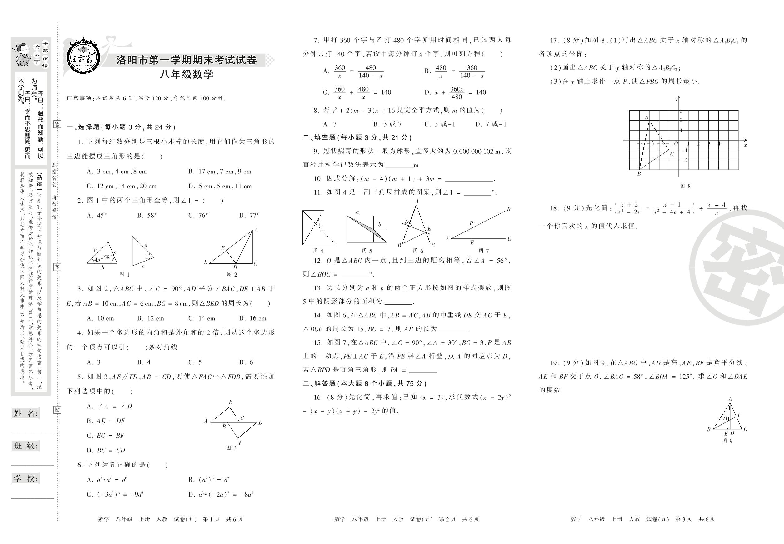 2016-2017学年第一学期洛阳市八年级数学试卷(人教版)_R210806115637【5】