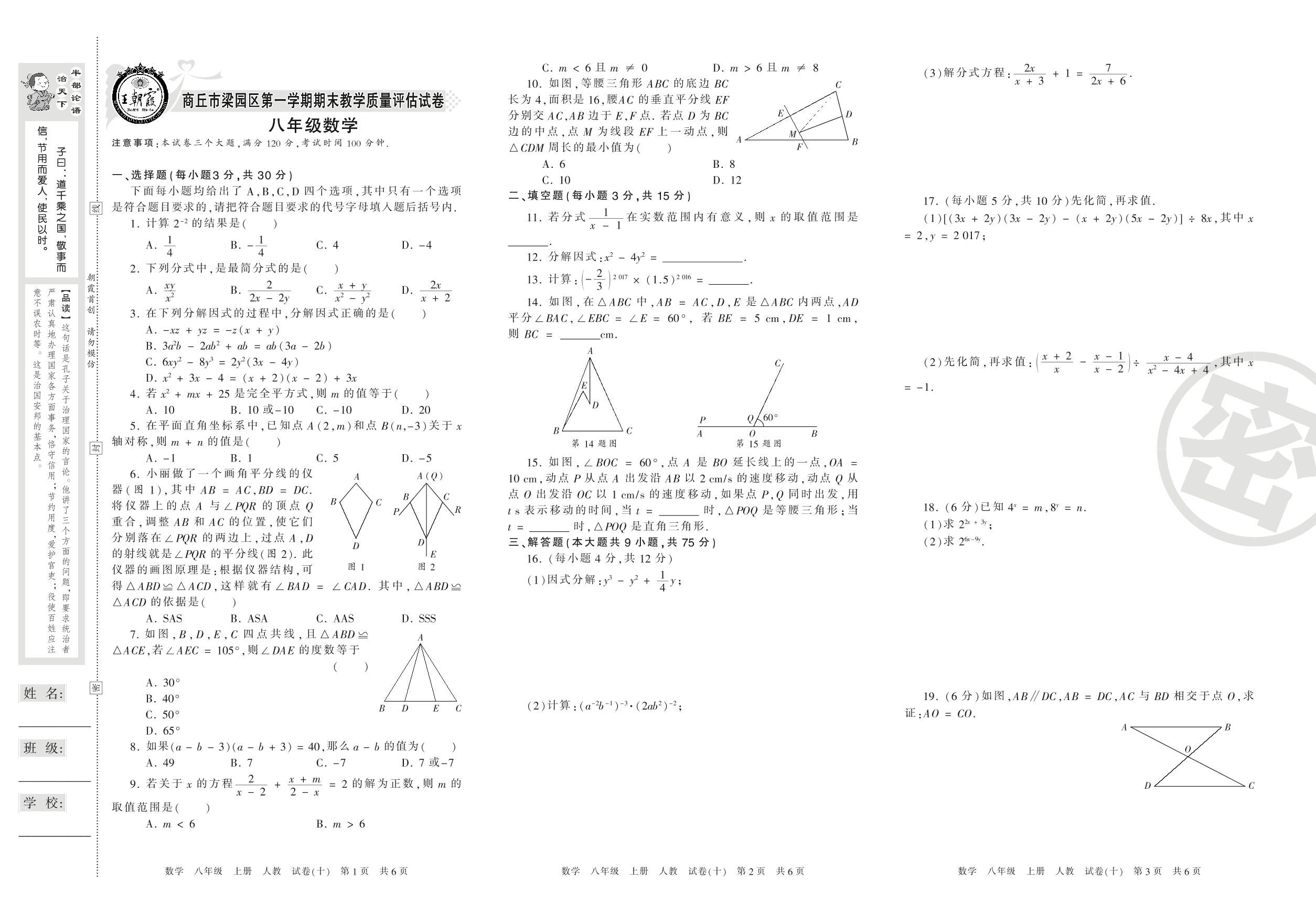 2016-2017学年第一学期商丘市梁园区八年级数学试卷(人教版)【10】