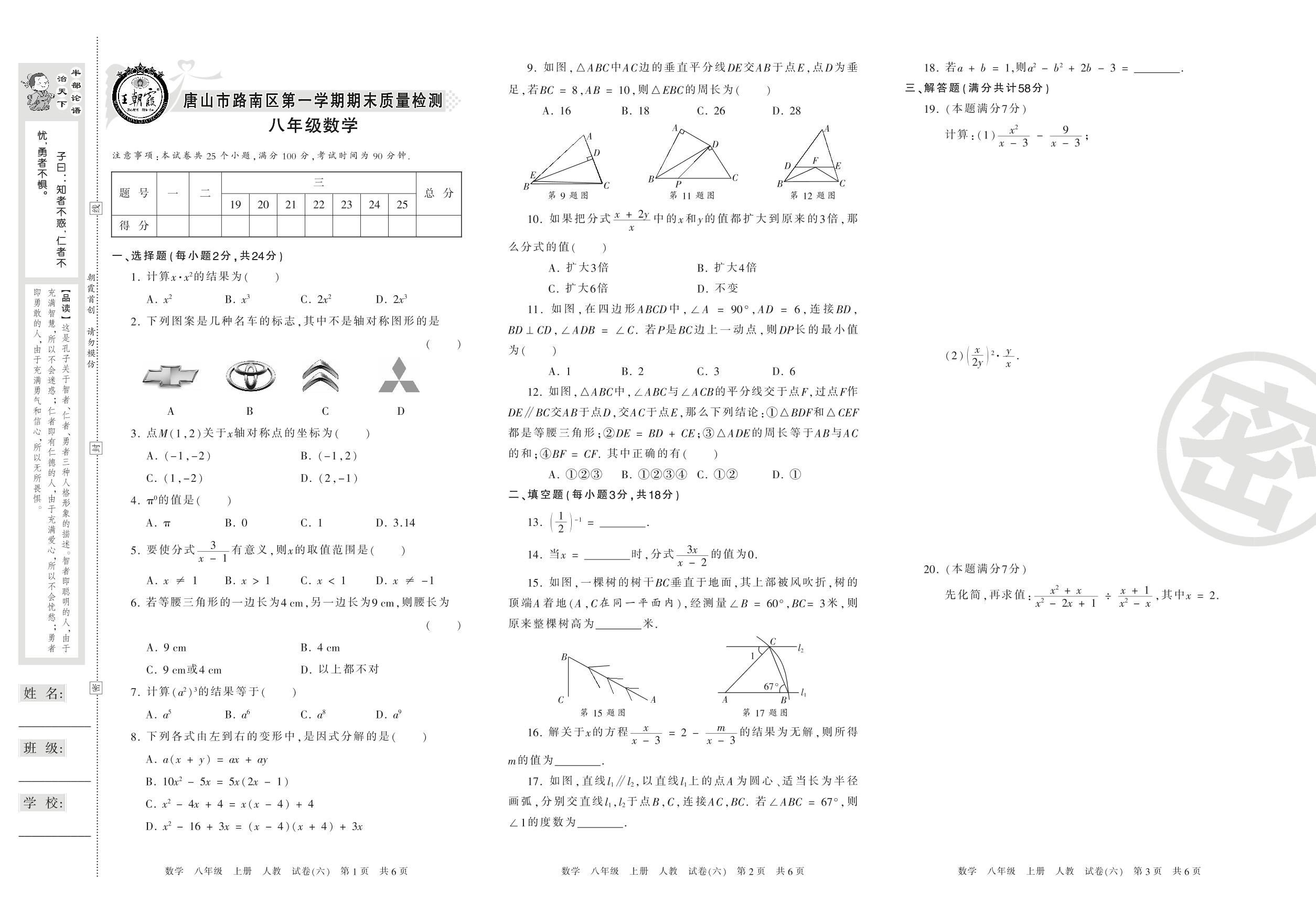 2016-2017学年第一学期唐山市路南区八年级数学试卷(人教版)【6】