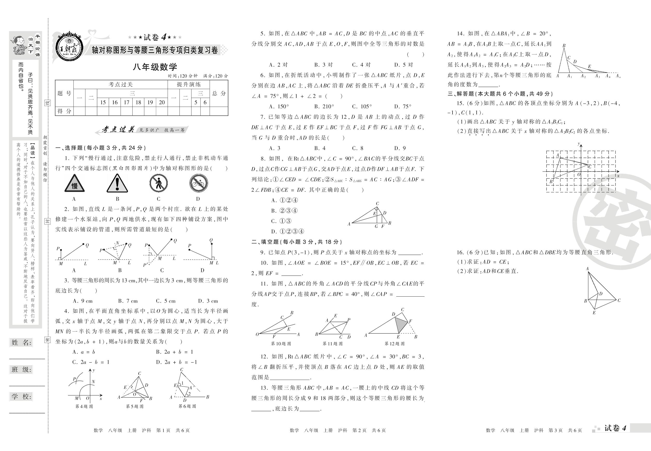 王朝霞期末专项卷八年级上册数学(沪科版)【4】