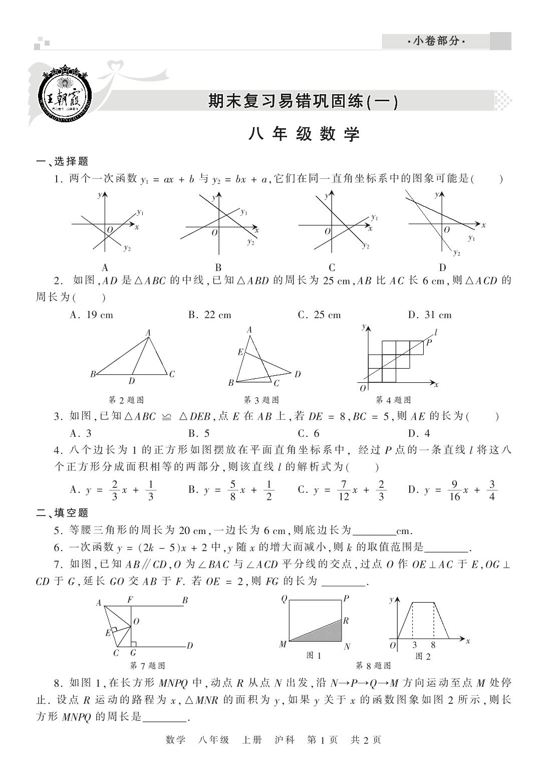 王朝霞期末复习易错巩固练八年级上册数学(沪科版)_R210806120015【0】