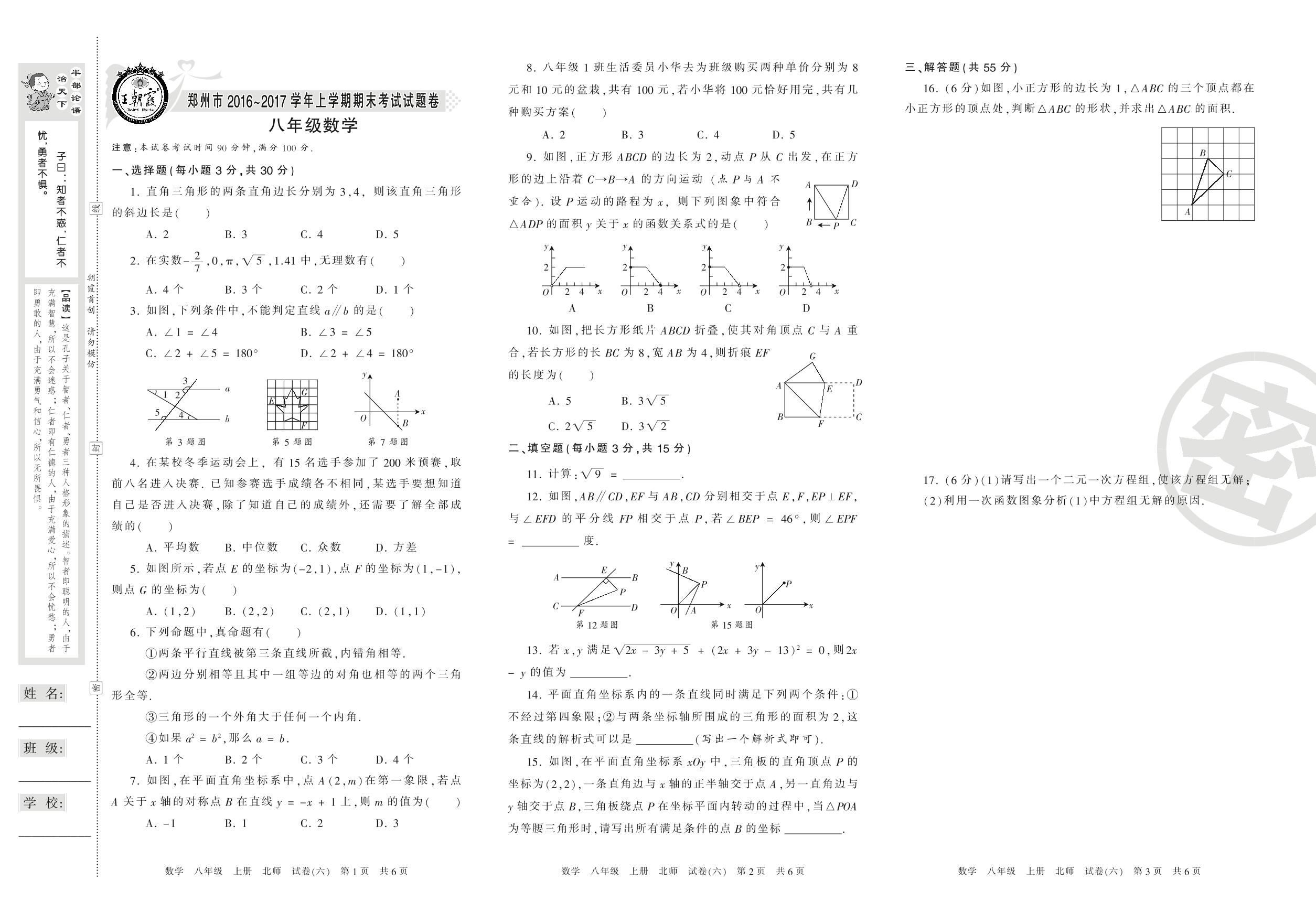 2016-2017学年第一学期郑州市八年级数学试卷(北师版)_R210806120125【6】
