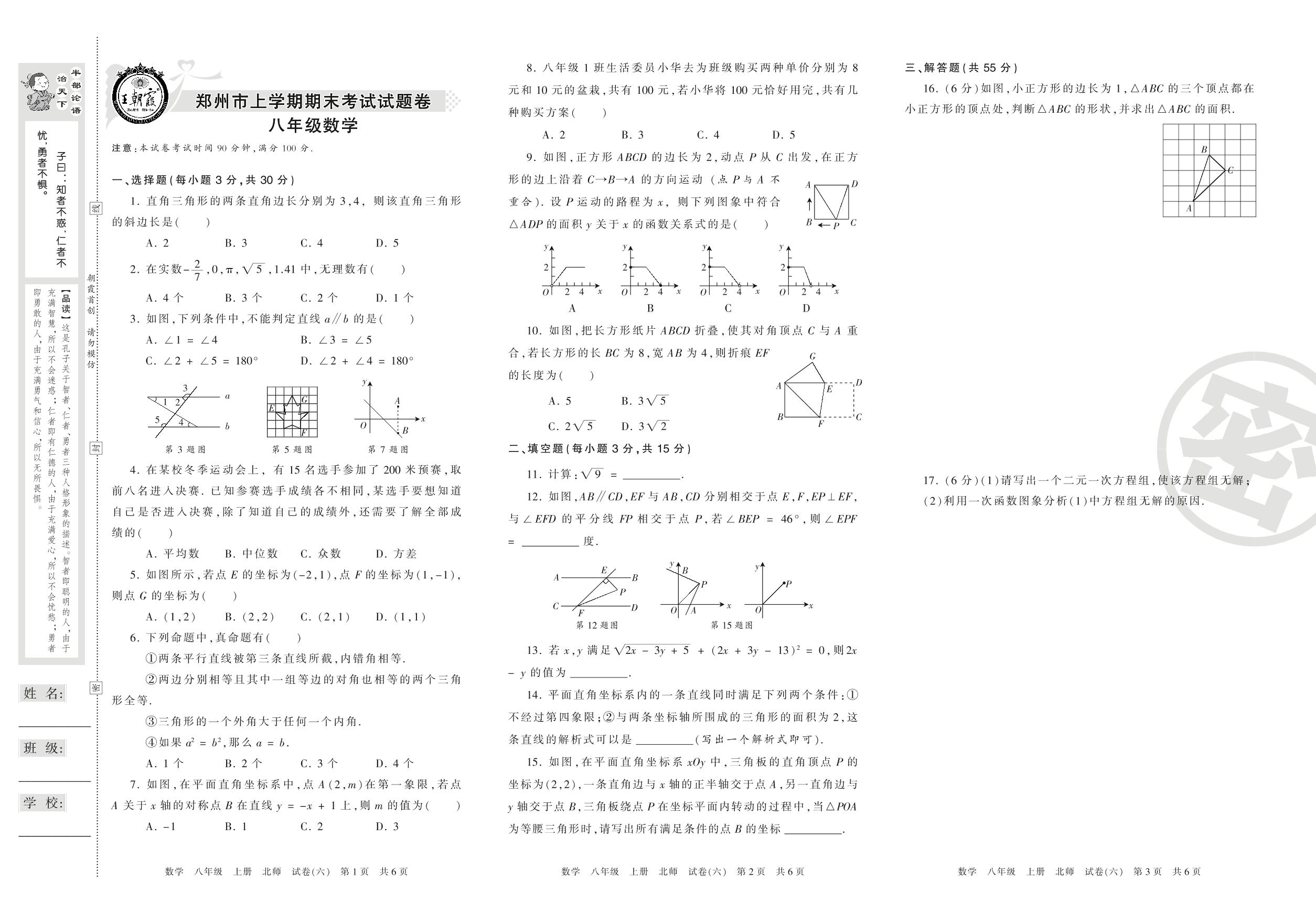 2016-2017学年第一学期郑州市八年级数学试卷(北师版)_R210806120513【6】