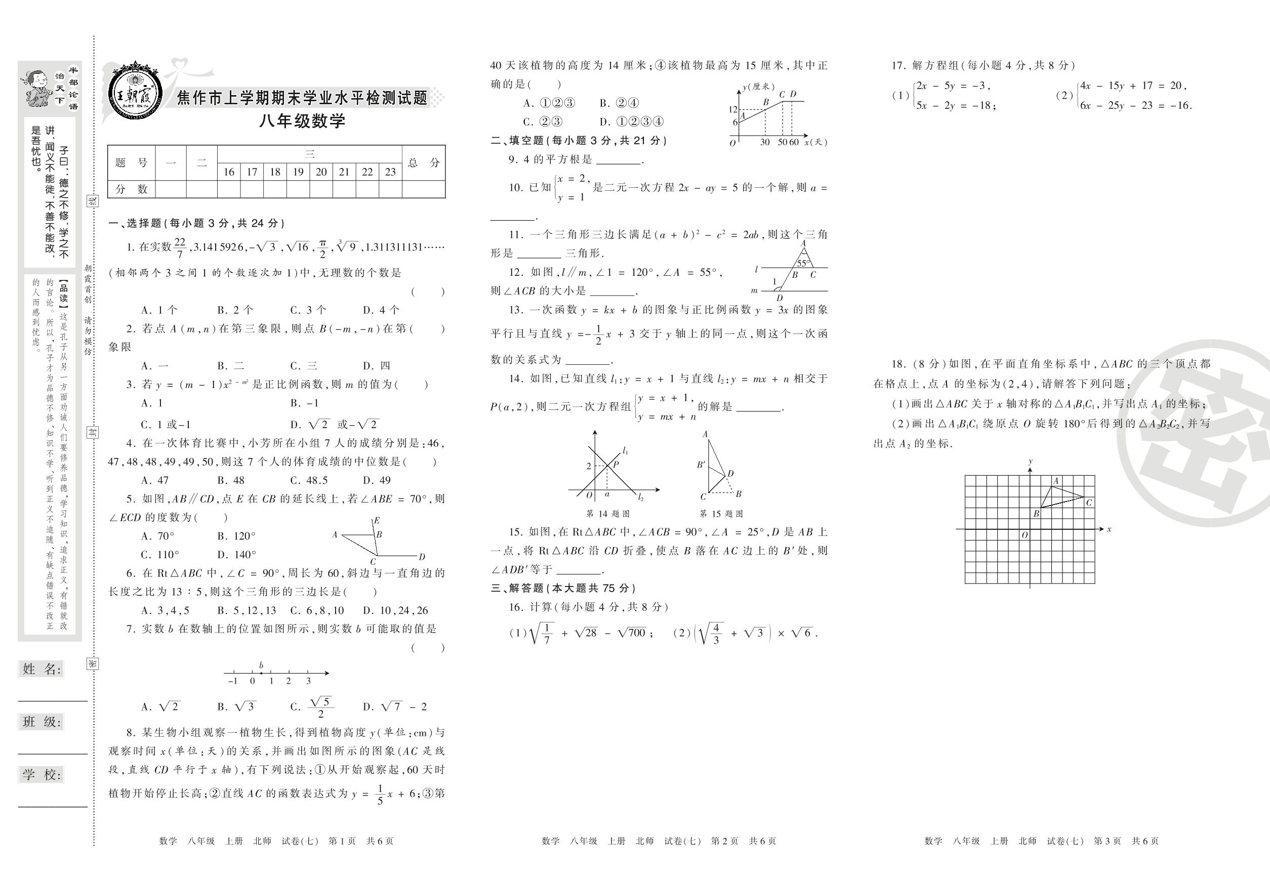2016-2017学年第一学期焦作市八年级数学试卷(北师版)【7】