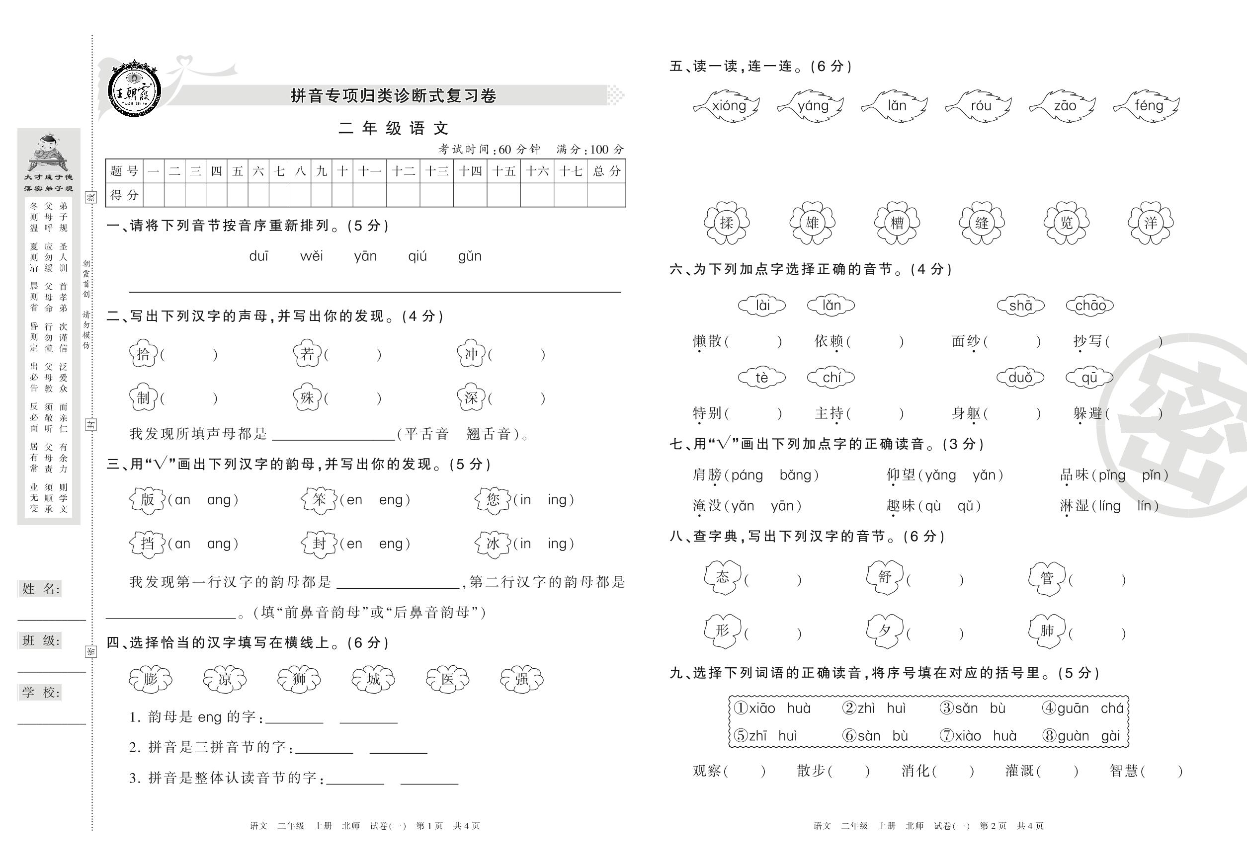 王朝霞期末专项卷二年级上册语文(北师版)_R21080175501【1】